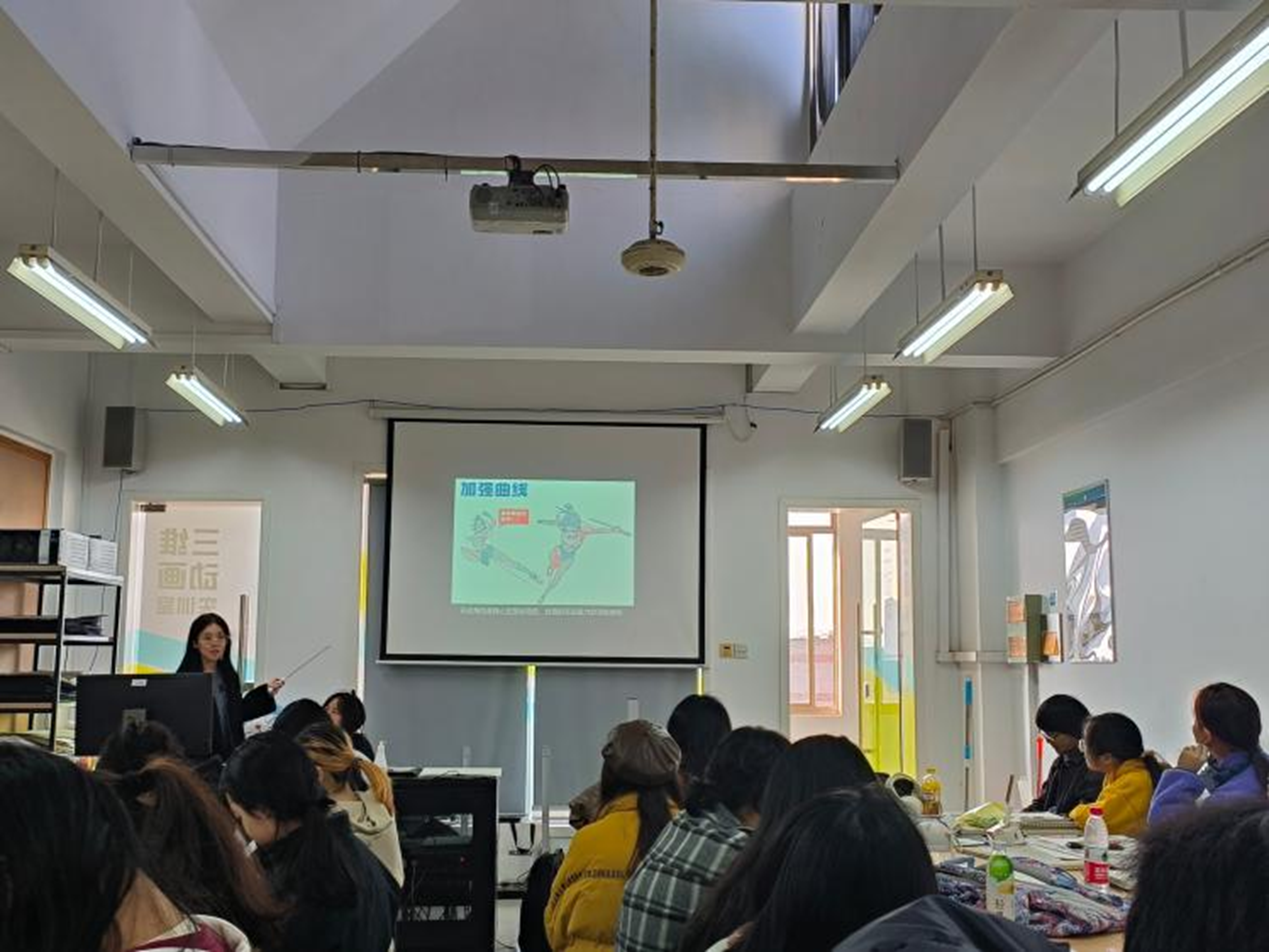 职业导师李昌国和师德导师贾娜娜就课堂内容、教学氛围、课堂秩序等方面进行指导,认为授课节奏生动活泼,知识内容引经据典,环环相扣,拓展了学生对动画角色设计的认识。学生们通过案例分析和课程实践,更好地理解如何将平面几何图形融入动画角色设计中。除此之外,也提出了在课堂教学中增加实践实训内容的建议。