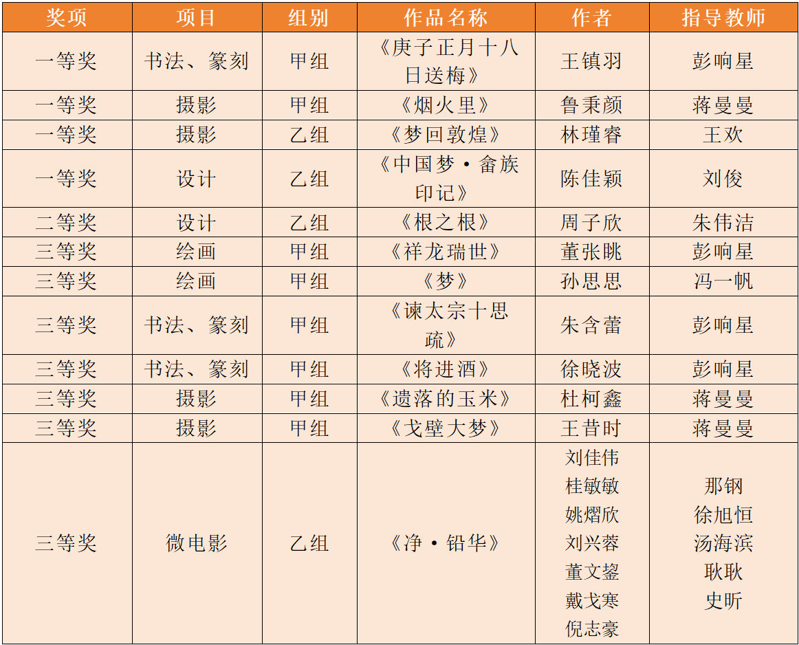 浙艺师生们用富有思想性、艺术性、创新性的精品力作,生动诠释了新时代青年学子敢于有梦、勤于追梦、勇于圆梦的价值追求,展现了当代大学生与祖国同行、与时代同行、与梦想同行的价值追求、审美情趣和艺术修养。