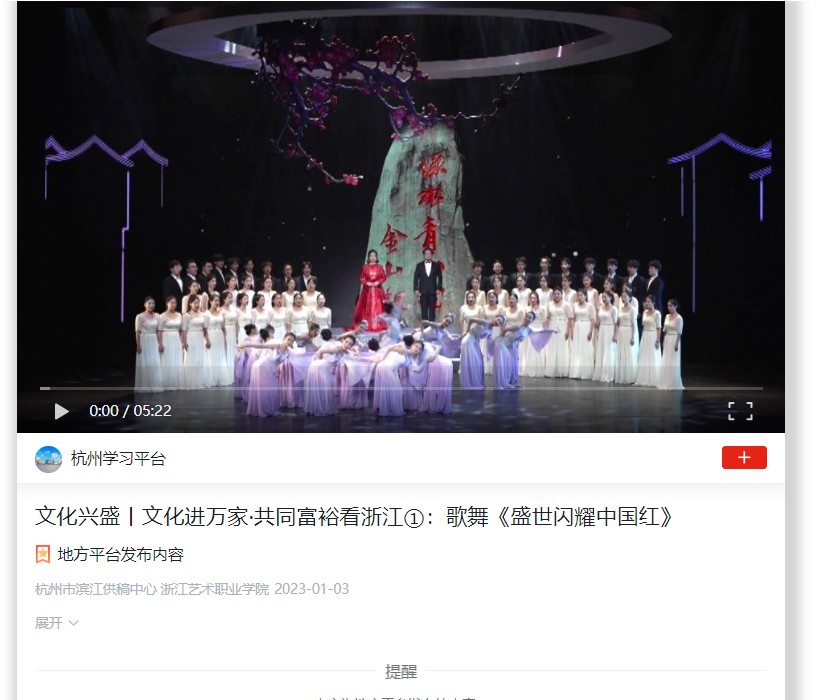 学习强国杭州平台:文化兴盛丨文化进万家·共同富裕看浙江①:歌舞《盛世闪耀中国红》