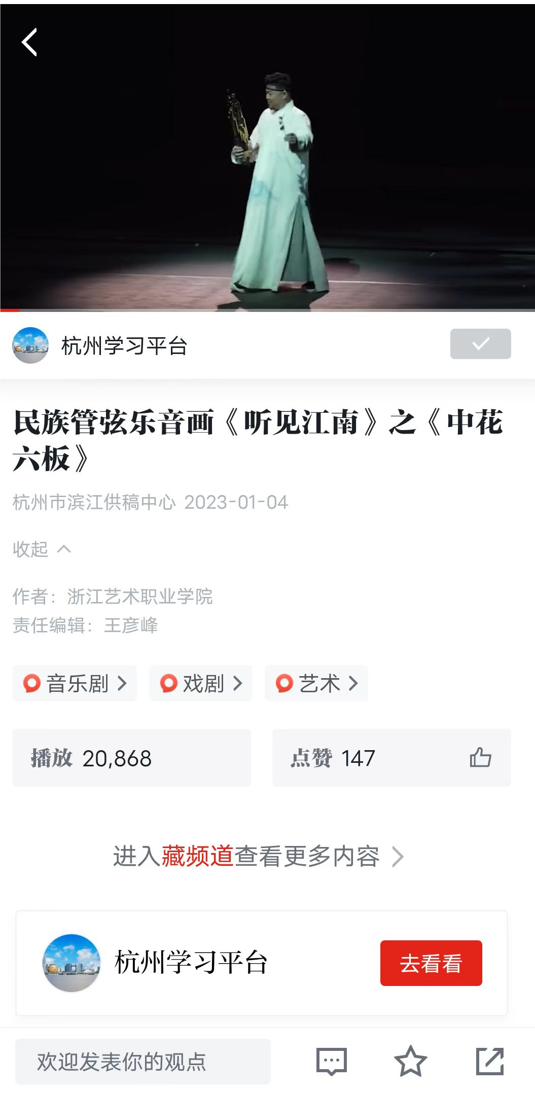 学习强国全国平台:民族管弦乐音画《听见江南》之《中花六板》
