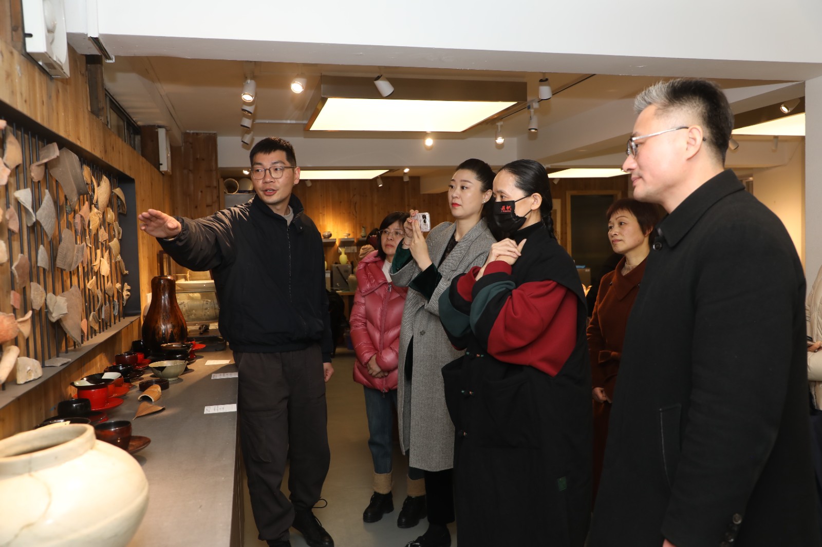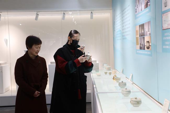 冯英一行还参观了“匠心守艺”手工艺教学成果展、浙江实验艺术剧场、陶艺室、文物修复实训室等。
