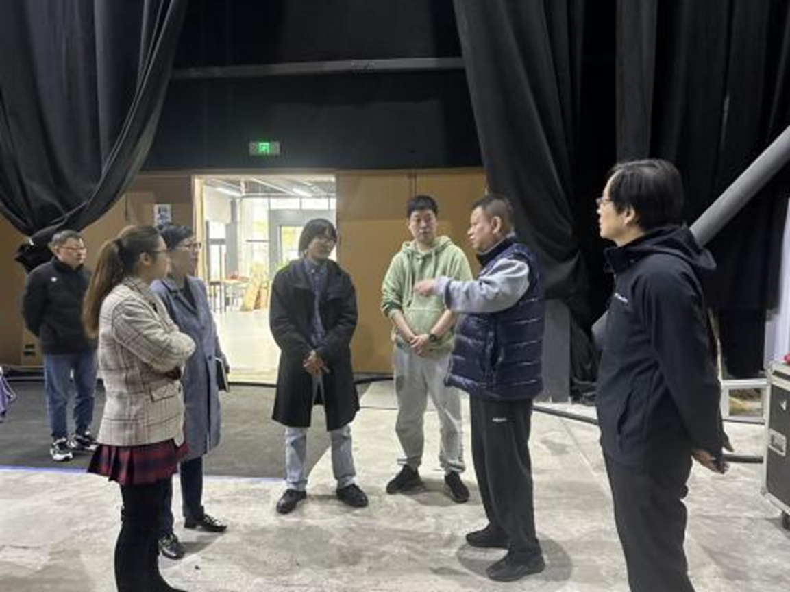 浙江天瀚文化发展股份有限公司是一家具有独立承揽大型综艺节目舞美设计与制作的一流企业,在业内具有良好的口碑及知名度。一行人在浙江天瀚文化发展股份有限公司负责人丁卫的带领下参观了公司的演播厅、现场灯光操控区、以及工作区,了解了大型文艺演出的舞台搭建、灯光音响安装调试、节目编排、场地管理、后勤保障等工作环节,对舞台艺术设计与制作专业未来的学生定向培养及教学建设有了新的认识。