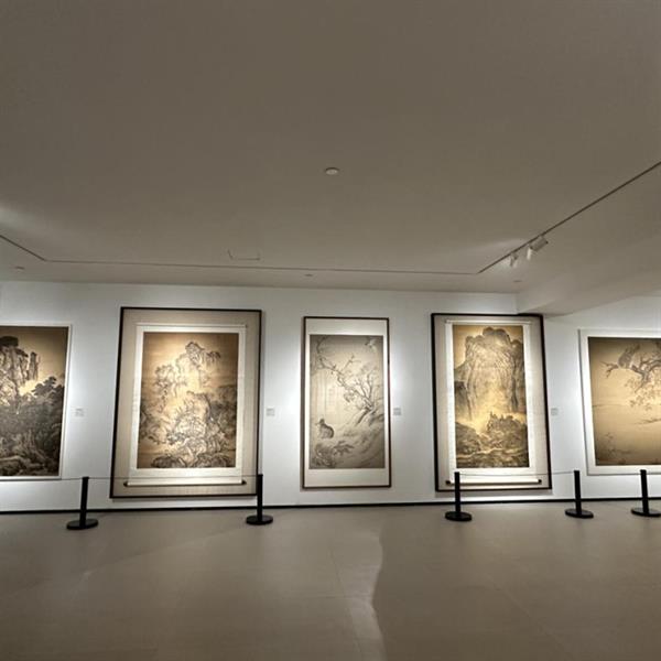 “宋韵今辉”艺术特展由“湖山揽胜”“夜山钩古”“立最高峰”“含英咀华”“典垂百代”等五大部分构成,以艺术的形式展现了宋韵书画绵延千年的传承与创新。其中,“湖山揽胜——宋韵江南书画艺术”作为核心展览,汇聚了众多国内顶尖博物馆历代书画铭品,展出宋元明清传世书画37件,系统呈现了从宋、元、明、清到近现代江南地区的宋韵书画艺术文脉。