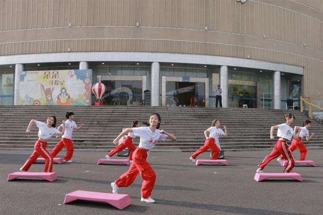 健美操舞者们脚步翩跹,步履轻盈,刚与柔碰撞,力与美交织。整齐划一的动作和轻快的节奏给人以强烈的视觉冲击。她们意气风发,舞动青春年华。