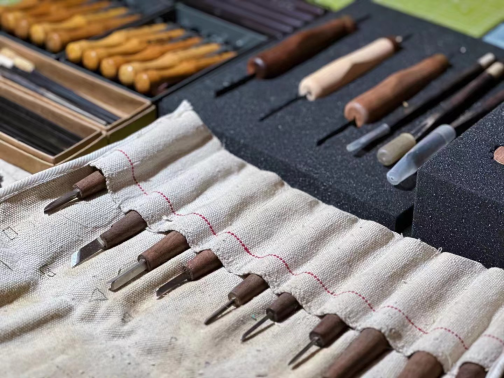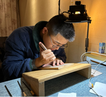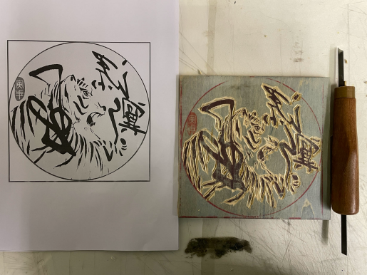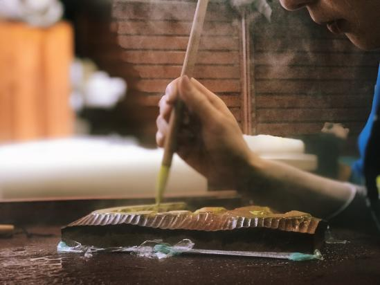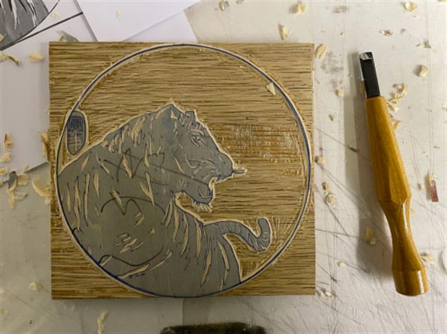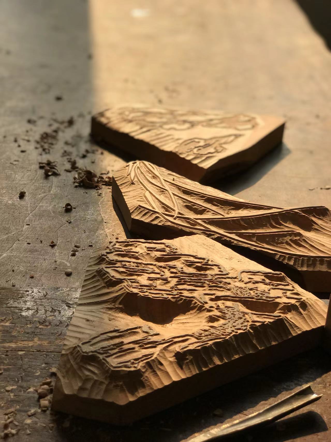 这是我第一次被“传统水印木刻”触及到内心的时候,也是我第一次下定决心想要学习水印木刻的时候。而这条路并不好走,考取也来之不易,当我在“紫竹斋”里真正拥有一张工作台(印案)的时候,我开始思考“传统”和“水印木刻”二者相加的意义是什么。几年的学习经历传承给我的思想是,我们需要继承和原汁原味地保存中国传统木刻的本色,但同时,也要力求实现传统的创作性转化,使水印木刻成为具有创造潜力的艺术手段。