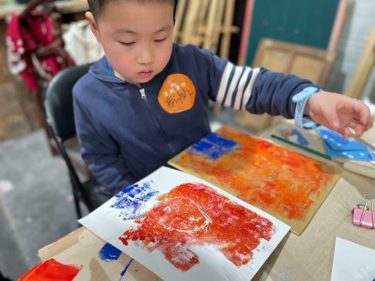 我想要作为一个小小的“播种”体,把与水印木刻第一次触碰内心的那一瞬间以及“传统水印木刻”带给我的意义“播种”出去,让它与当下最稚嫩的孩童发生对话。