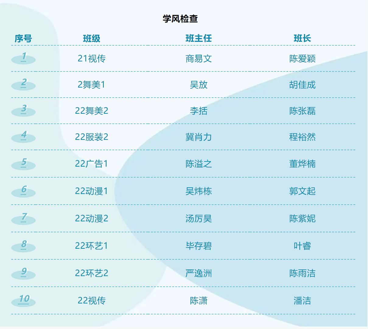 经过检查评比,本期推送2月-3月在课堂考勤、学风检查、公寓考勤、违纪违规检查中表现优异的班级,分别是: