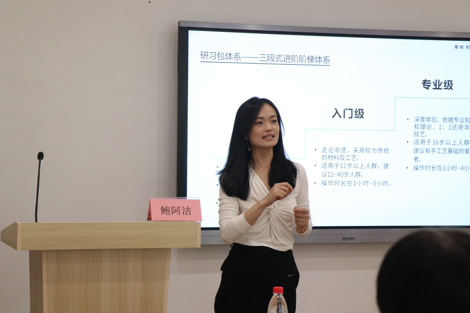 为深入探索文旅融合新模式,推动传统工艺实现创造性转化、创新性发展,更好服务经济社会发展和人民高品质生活,手工艺学院邀请浙江珞拾文化旅游管理有限公司运营管理总监鲍阿洁开展《文旅融合背景下传统工艺研发与创新转化的思考——基于珞拾“匠心匠品”非遗研习包研发历程的分享》主题讲座,手工艺学院全体教师参加。