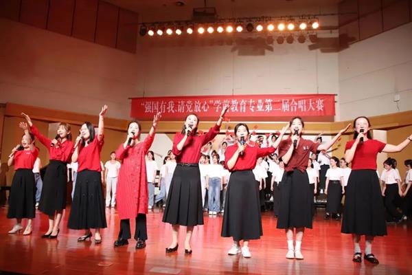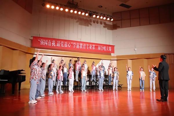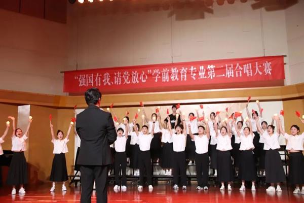 最后,一首由学前教育专业教研室全体教师共同演唱的《强国一代有我在》表达了“强国有我、请党放心”的时代最强音。他们将带领学前学子迎着朝阳,谱写孩子们美好的童年。
