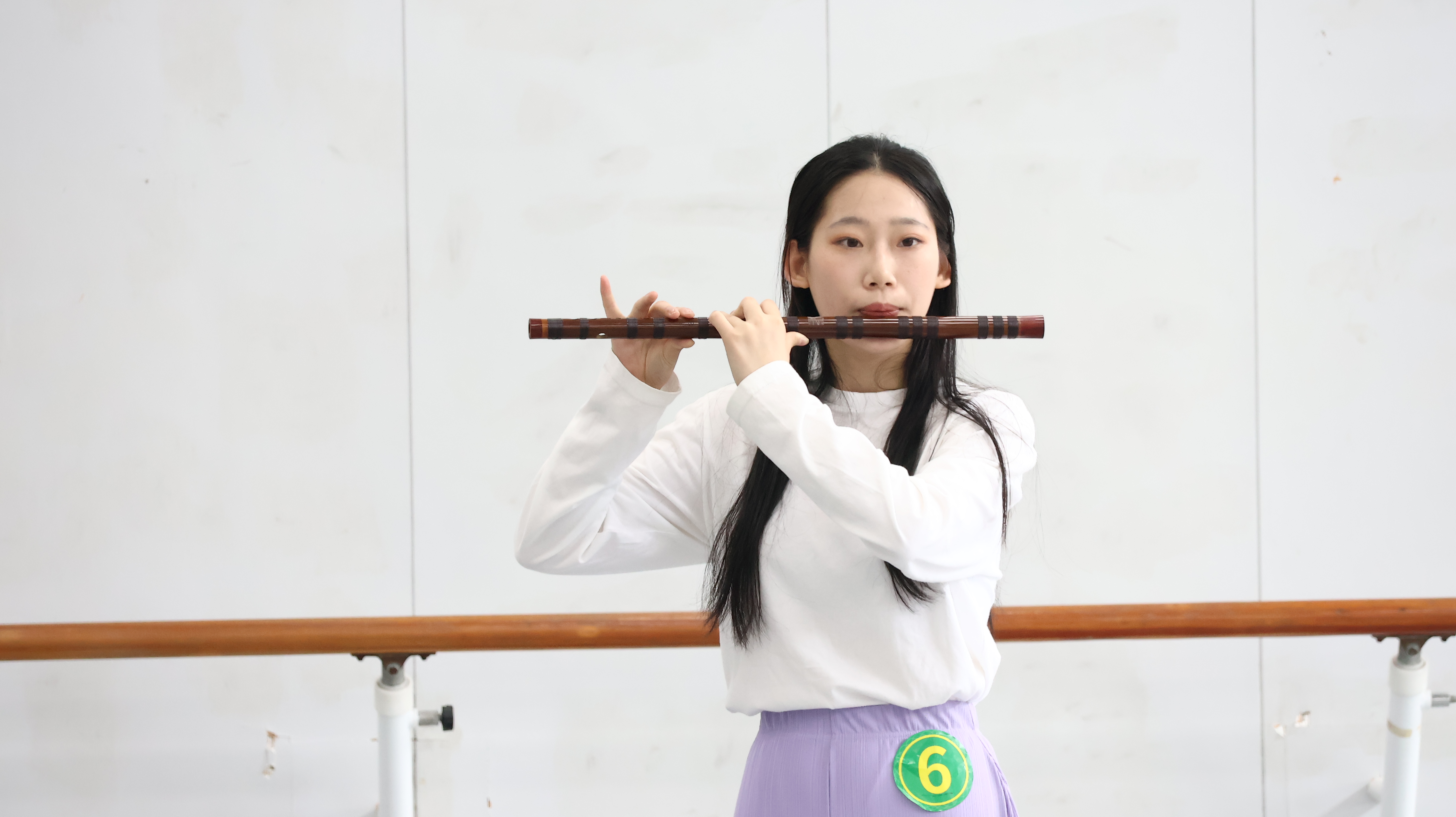 在候考教室内的考生抓紧为考试做最后的准备。有的站在窗前开嗓,有的认真检查乐器,有的面对镜子仔细检查穿戴服饰……专业测试时,考生按地区分组在学生志愿者的带领下井然有序进入考场,考官通过声乐、语言、形体、才艺展示等进行评分。现场,有的同学演唱流行音乐,有的同学进行无伴奏清唱;有的将一段寓言故事娓娓道来,有的声情并茂地朗诵诗歌;形体展示有武术、舞蹈等,跨度大,难度高;才艺展示中,有架子鼓表演,也有书法、国画展示。考生们有条不紊、神采奕奕,尽力将自己最优秀的一面展现在考官面前。