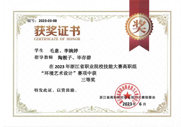 喜报|环境艺术设计专业学生在2023年浙江省职业院校技能大赛(高职组)“环境艺术设计” 赛项中喜获佳绩