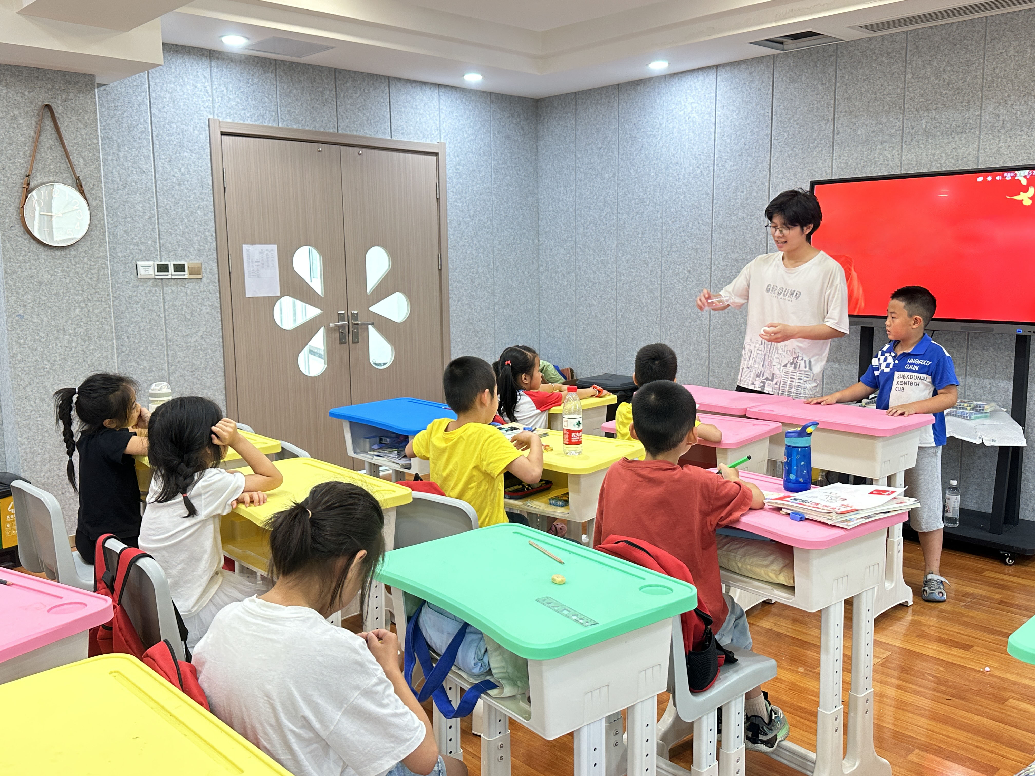 浙艺学为30余名“小候鸟”们设计了“基础+艺术+拓展”的融合课程,辅导小朋友们的暑假作业,邀请杭州滨江公安分局法制大队劳模吴仁贤作安全和劳动主题教育讲座,提升小朋友们的安全规范意识,从小培养崇尚劳动、尊重劳动、学会劳动的优良品德。