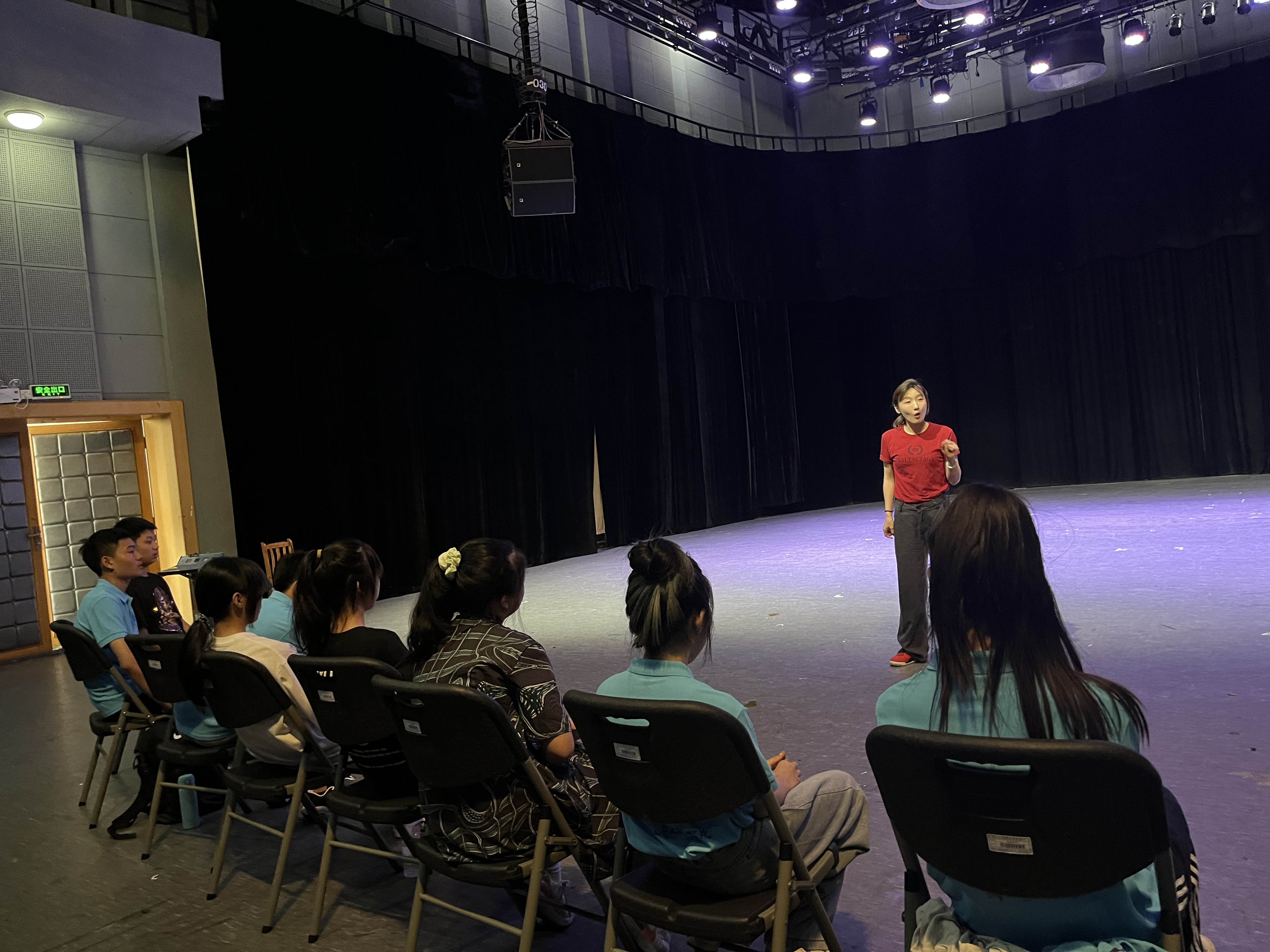 本次课程邀请了戏剧表演专业中专教研室的专业教师共同任教,演教学院表演艺术专业教师王皆慧担任班主任。表演教师张雯带领孩子们释放天性,进行了无实物表演、动物模拟、物件想象等专业训练。经过几天学习,学生们合作完成了一部原创情景剧。在台词教师施杳杳的带领下,学生们系统学习了发声、送气,了解了口腔训练的核心状态。经过几天的学习排练,学生们能够很好地完成《四声歌》《粉红女》《说马》等绕口令。形体教师陈宇歌以音乐剧片段为载体,培养学生们的综合素质和艺术鉴赏能力。在训练过程中,学生们慢慢理解了音乐与舞蹈、戏剧的艺术关系,感受音乐在其中的表现作用。声乐教师卢茜从如何吸气到发声进行了详细的讲解与示范,传授了正确的发声步骤。学前教育专业教师张璐瑶带领同学们学习奥尔夫音乐,让学生配合演奏各种乐器,体验节奏的美妙。
