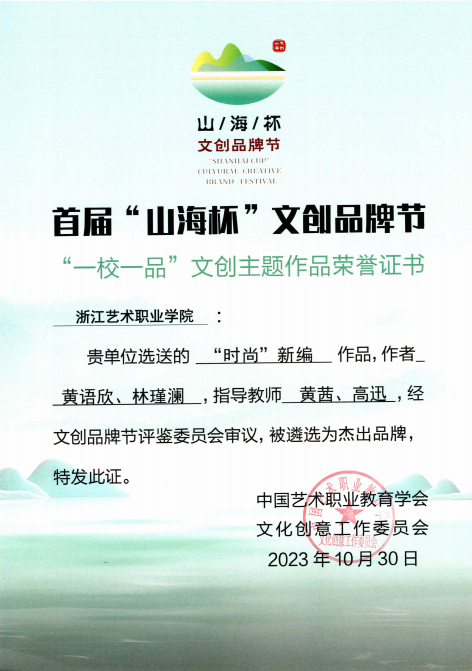 展示艺术设计专业学生作品获2023国际金创意华人设计奖铜奖
