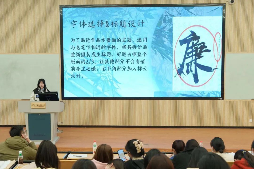 教师黄洁慧、程振洲、刘苏宁肯定了同学们这一阶段的学习成果,希望同学们能够总结经验,将所思所学投入到日后更广阔的专业学习中,并从创意构思、画面设计等方面向同学们提出了相应的优化意见,鼓励同学们在接下来的学习和实践中更加大胆地进行创作。