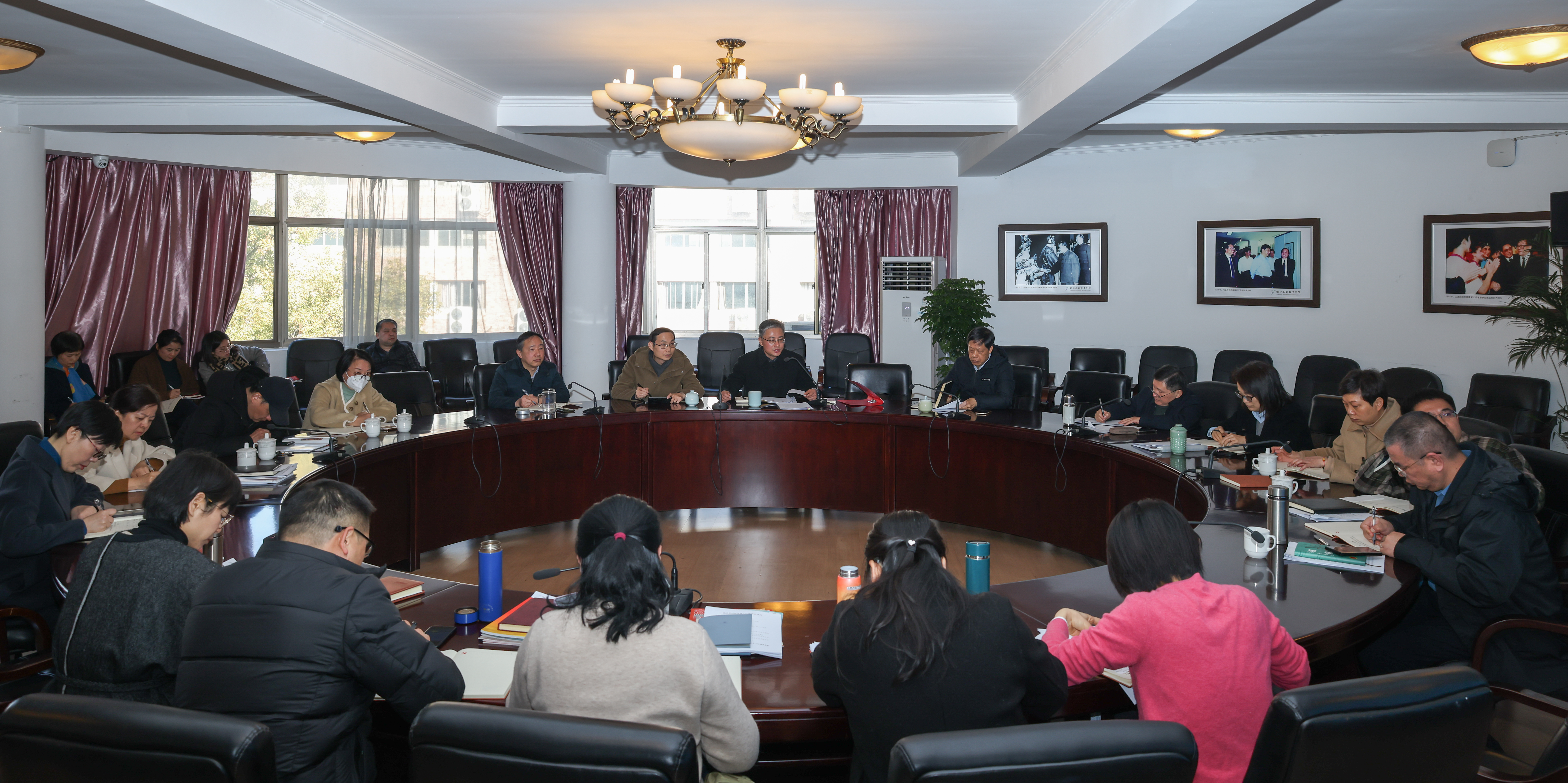 1月17日上午,学校党委理论学习中心组举行2024年第1次(扩大)学习会,校党委书记薛亮主持学习会并传达学习文化遗产保护传承座谈会精神、全省宣传思想文化工作会议精神、省委书记易炼红走访省文化和旅游厅讲话精神,就新修订的《中国共产党纪律处分条例》做解读学习,对习近平新时代意识形态重要论述作专题学习。校党委班子成员、职能教辅部门主要负责人、二级教学单位党政主要负责人参加学习会。