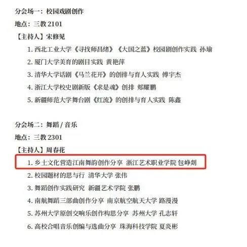 12月14日至15日,全国高校美育教学工作交流与研讨活动在清华大学举办。舞蹈学院副院长包峥剡作为特邀嘉宾,受邀参会并在“校园作品创作”环节进行了主旨演讲。