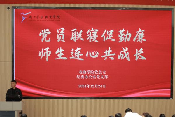 12月24日中午,戏曲学院党总支与纪委办公室党支部联合举办了“党员联寝促勤廉,师生连心共成长”党员联系寝室活动。校党委委员、纪委书记沈军甫,校纪委办公室、戏曲学院全体党员和近300名戏曲学子共同参与。活动由戏曲学院党总支书记谢志勇主持。