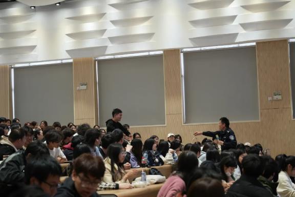 讲座中,沈建松通过一个个生动的案例,剖析了当前电信诈骗和网络诈骗的常见手法和特点,沈建松对当前常用的诈骗方式进行了系统而细致的归类并深入讲解,使在场的同学们对诈骗的全过程有了更加清晰和深刻的认识。在讲述过程中,沈警官不时与同学们进行互动,提出问题引导大家思考,现场气氛活跃。