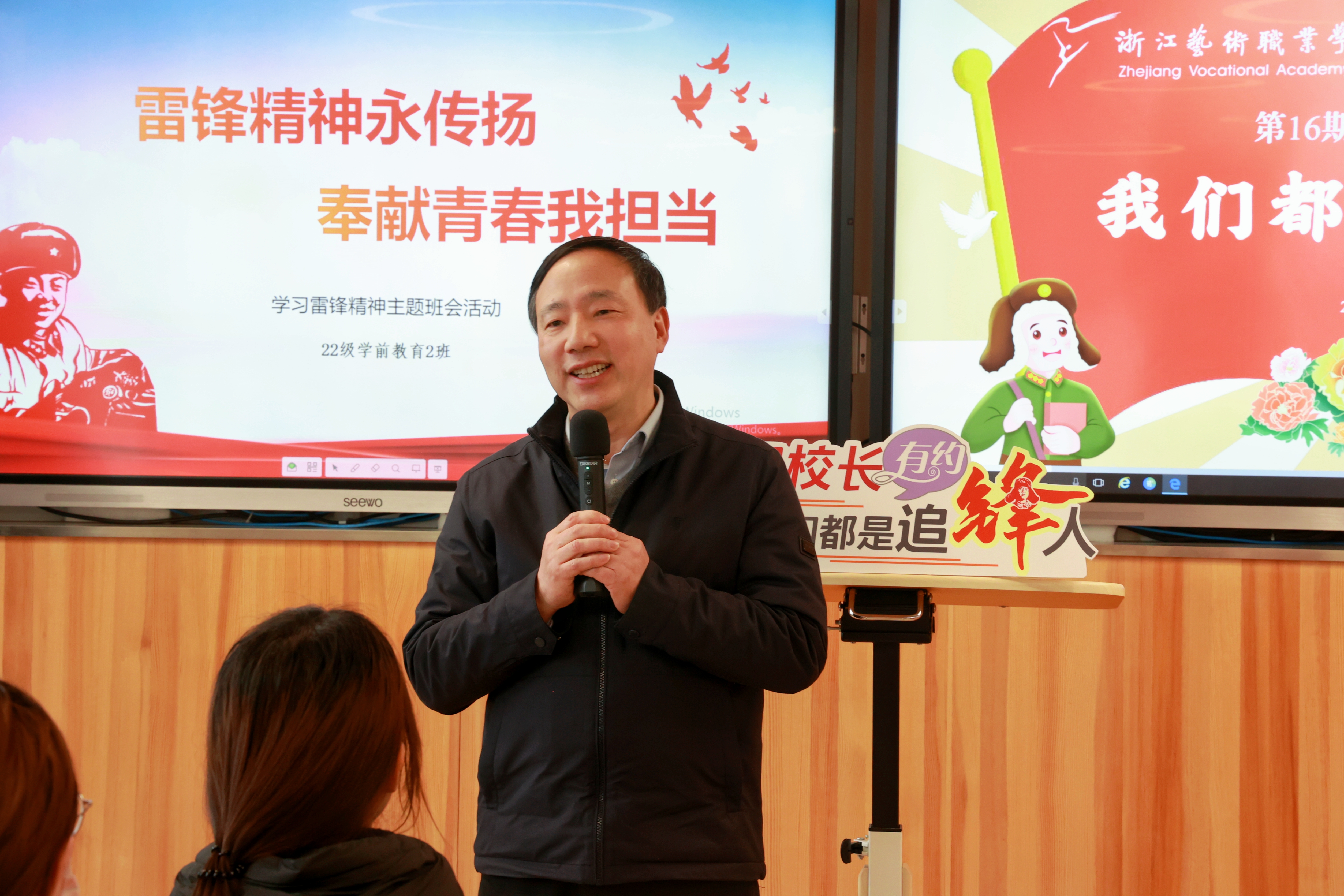 3月5日上午,8702教室气氛热烈、激昂澎湃。校党委书记薛亮正在为2022级学前教育2班学生开展一堂别开生面的“雷锋精神永传扬,奉献青春我担当”主题班会,引导青年学生争做新时代追“锋”人。此次活动也是“书记校长有约”第16期活动。