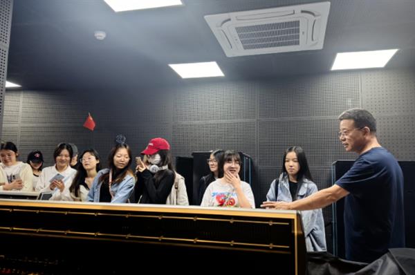 在音控方面,歌剧厅同样采用了完善的音响布局。主扩配备了目前最为先进的DIGICO调音台和LA(阿酷司)专业12+3线阵音响设备,多点位布局做到了声压全场均匀覆盖,合理的建筑声学设计与精确的混响时间调整确保了观众池每一位观众均能同一时间感受到来自舞台的声音;音质丰富卓越,声定位准确,观众们犹如置身剧情之中。音响系统的高度互动性和自动化管理功能,展现了音控技术的现代魅力。在研学过程中,学生们亲身体验了系统的操作过程,感受到了音控技术的便捷和高效。这不仅加深了他们对音控技术的理解,也激发了对未来音像工程领域的无限遐想。