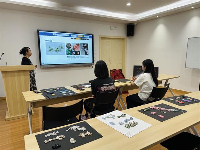 《传统服饰技艺—嵌丝硬花扣制作(一)》课程以“技艺传承、文化育人”为核心教学理念,采用“课前识技”“课中学技”“课后磨技”的教学策略和“观察、探索、实践、拓展”四步教学法,引导学生由易到难、循序渐进地掌握嵌丝硬花扣的制作技艺,领悟精益求精的工匠精神,激发对中华优秀传统文化的热爱,涵养文化自觉、建立文化自信、提升审美能力、培养创新精神。