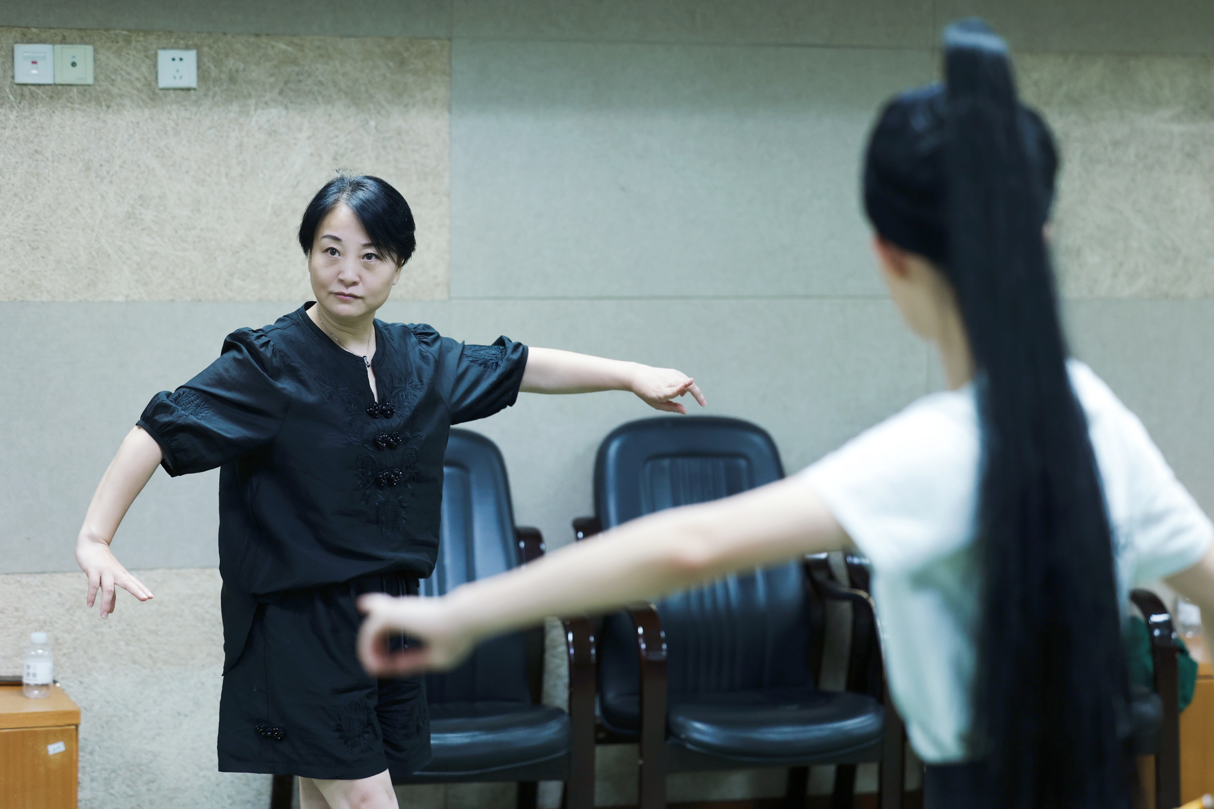 ▲支涛教授在给学生陈丽君说戏