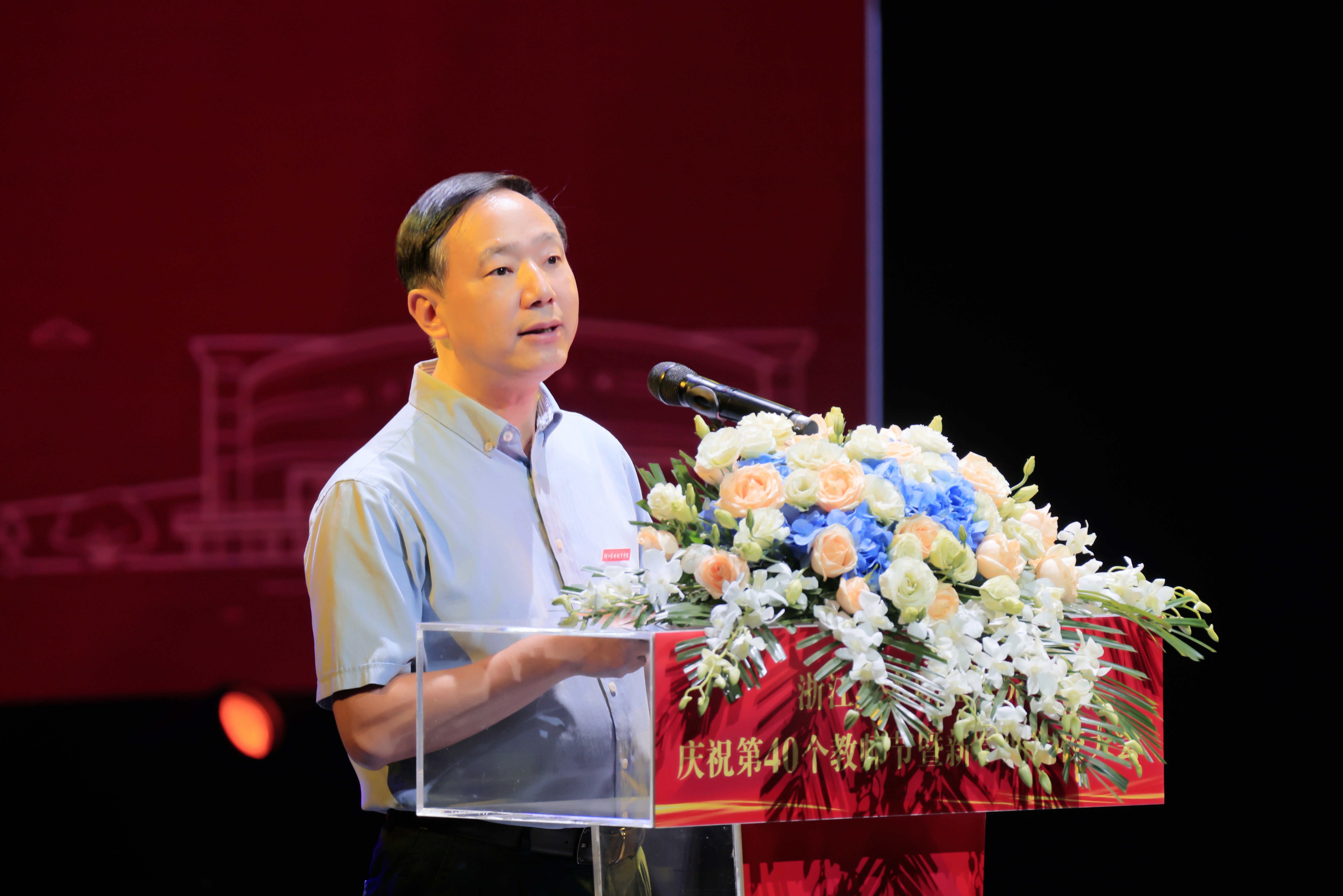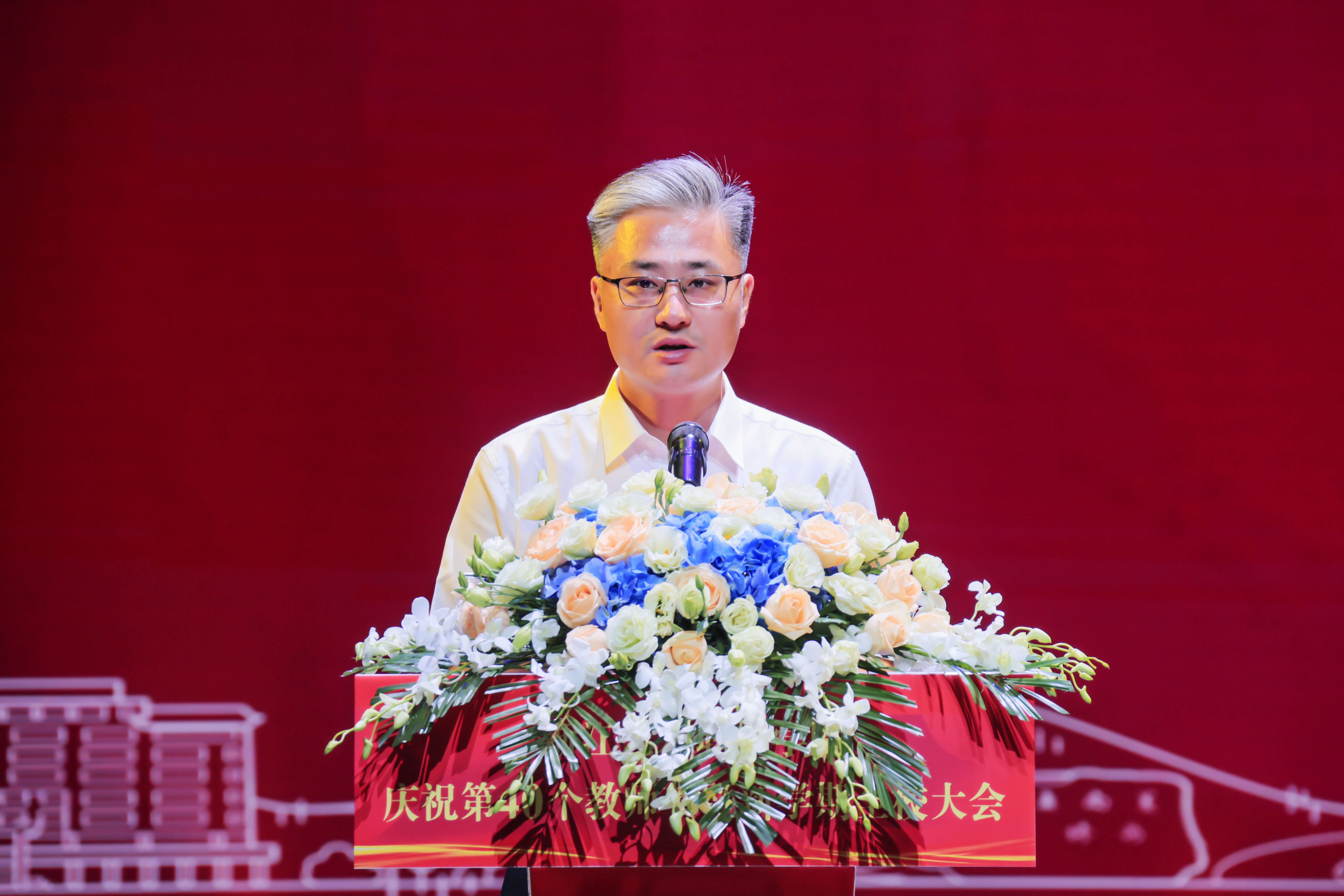 “我代表学校领导班子,向全体教职工以及离退休老同志、老教师,致以节日的问候和崇高的敬意,向辛勤工作在教学、科研、创作、管理与服务一线的教育工作者道一声:老师们,辛苦了!”校长施俊天在会上指出,“今天,我们不仅是为了庆祝教师节,更是对未来教育发展的规划与展望。”他从党的领导全面加强、内涵建设成效显著、队伍建设着力加强、育人质量不断提升、发展瓶颈持续破解、治理能力继续加强等6个方面系统回顾了上半年工作的主要成效,并提出了新学期的工作目标和展望。
