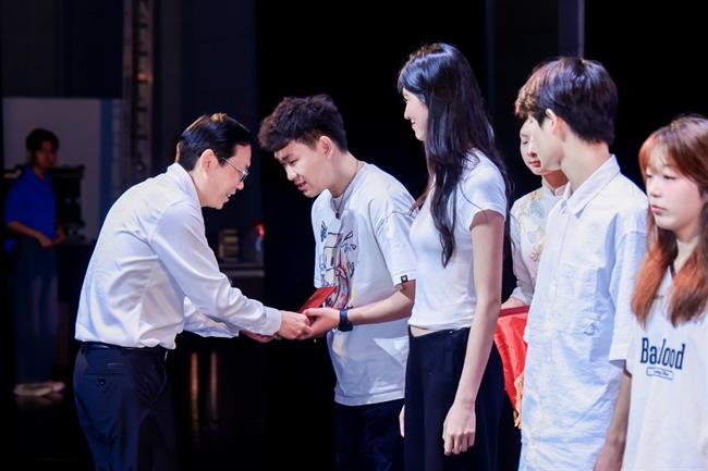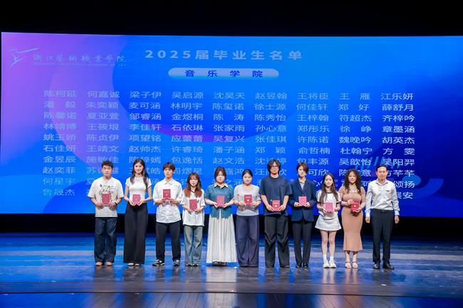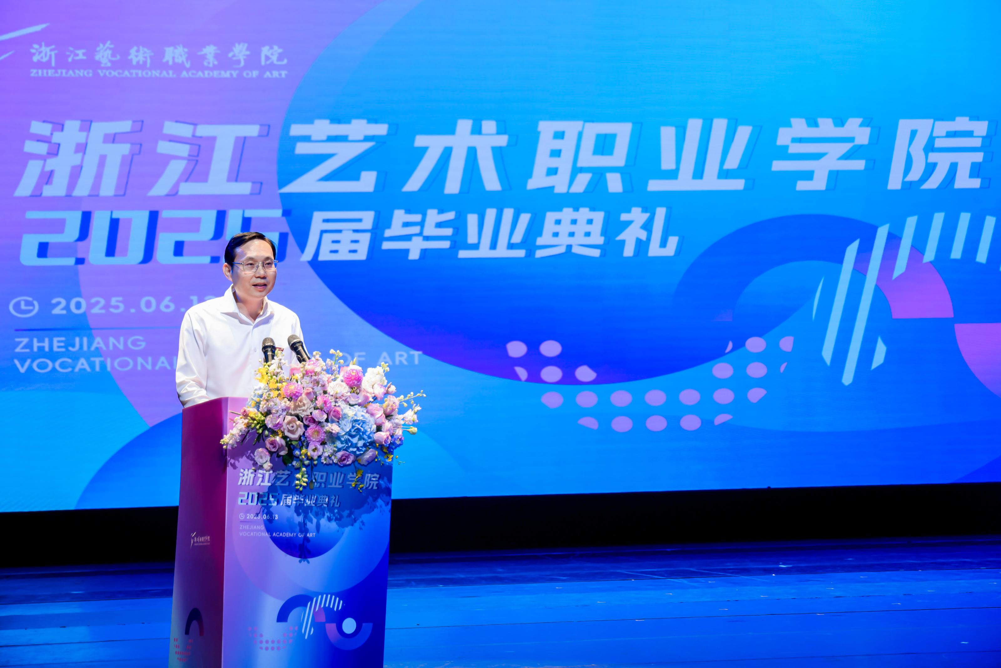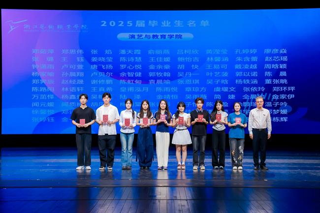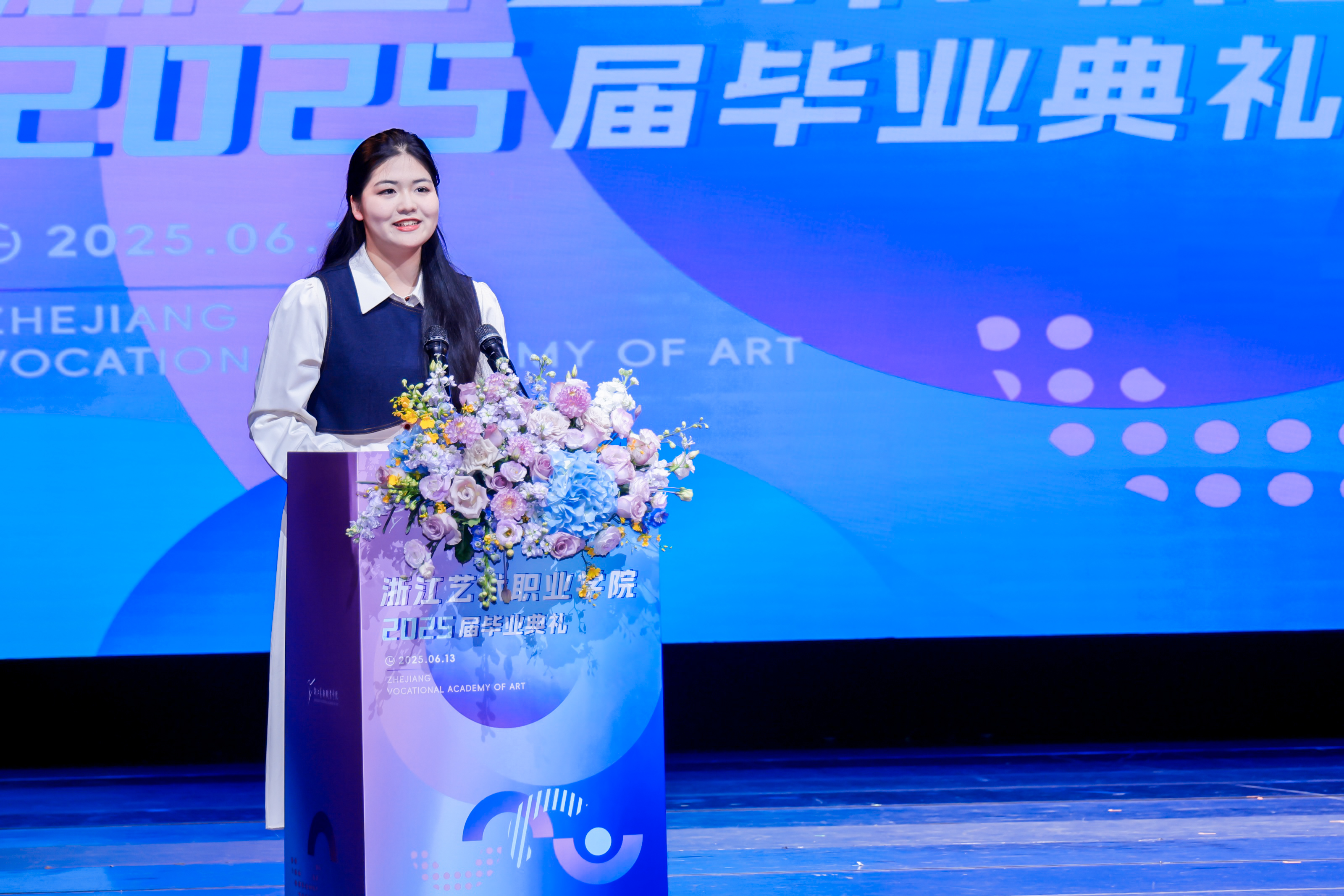 2025届毕业生代表程裕然(设计学院)、刘兴蓉(戏剧影视学院)、叶松清(附中)深情回顾在校求学的珍贵时光,字句间满是对母校的眷恋与感恩。他们希望未来能永葆少年赤诚之心,用镜头描绘时代的色彩,用舞步丈量世界的宽广,用歌声传递人性的温度,秉持“求真 尚美 精艺 修为”的校训精神,奋力书写属于这一代人的璀璨篇章。