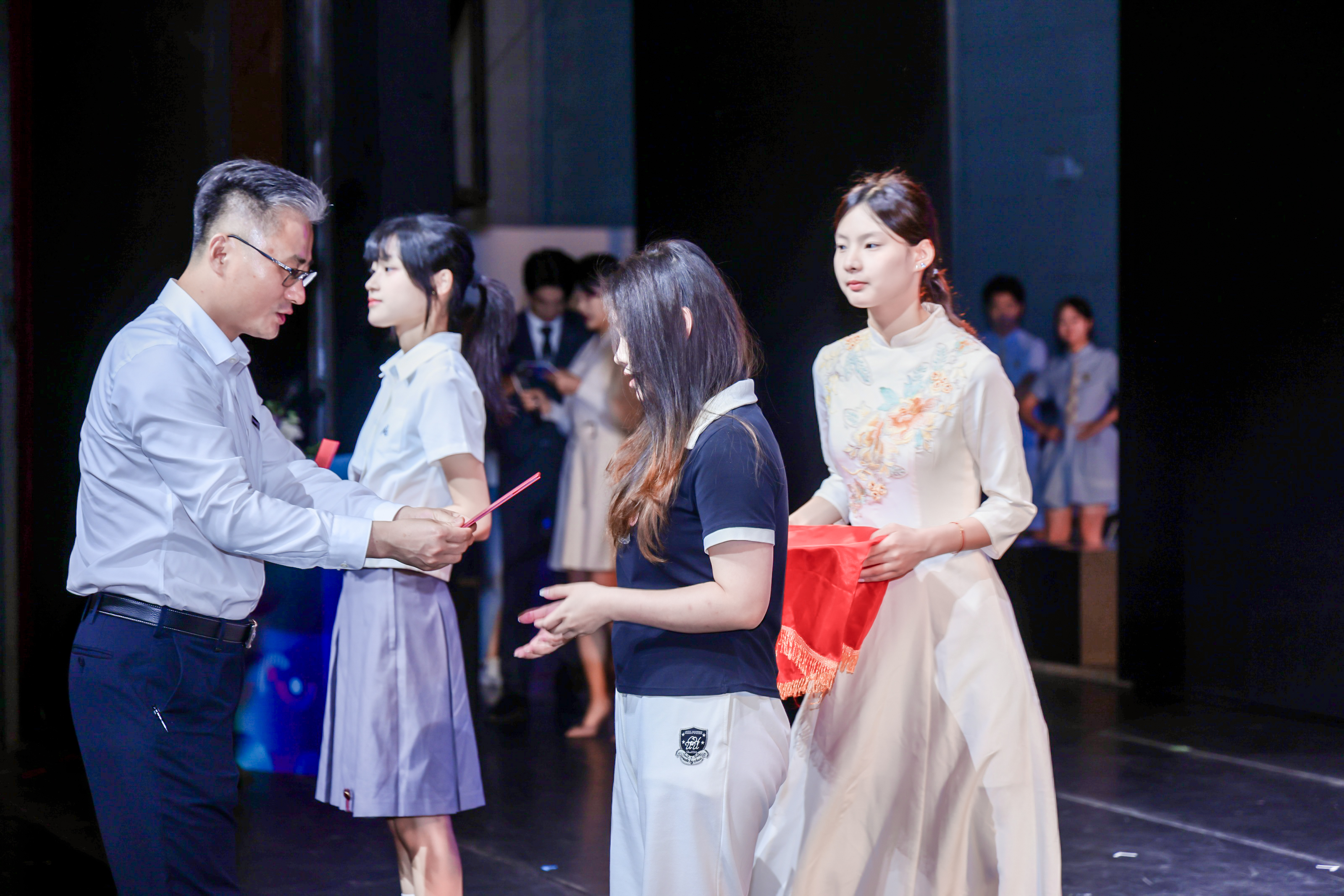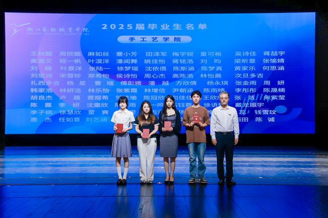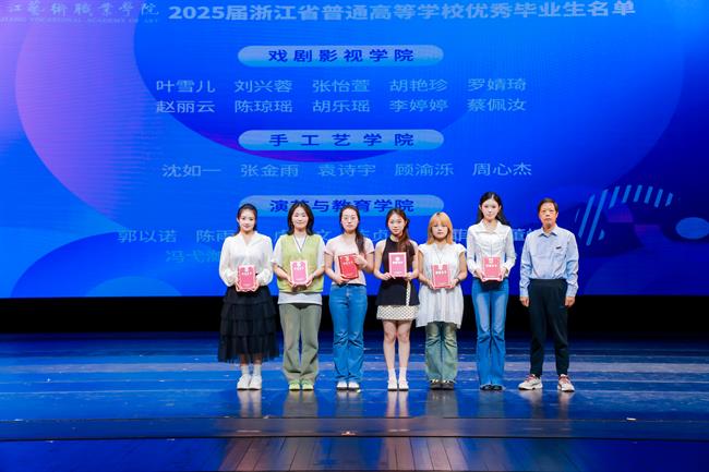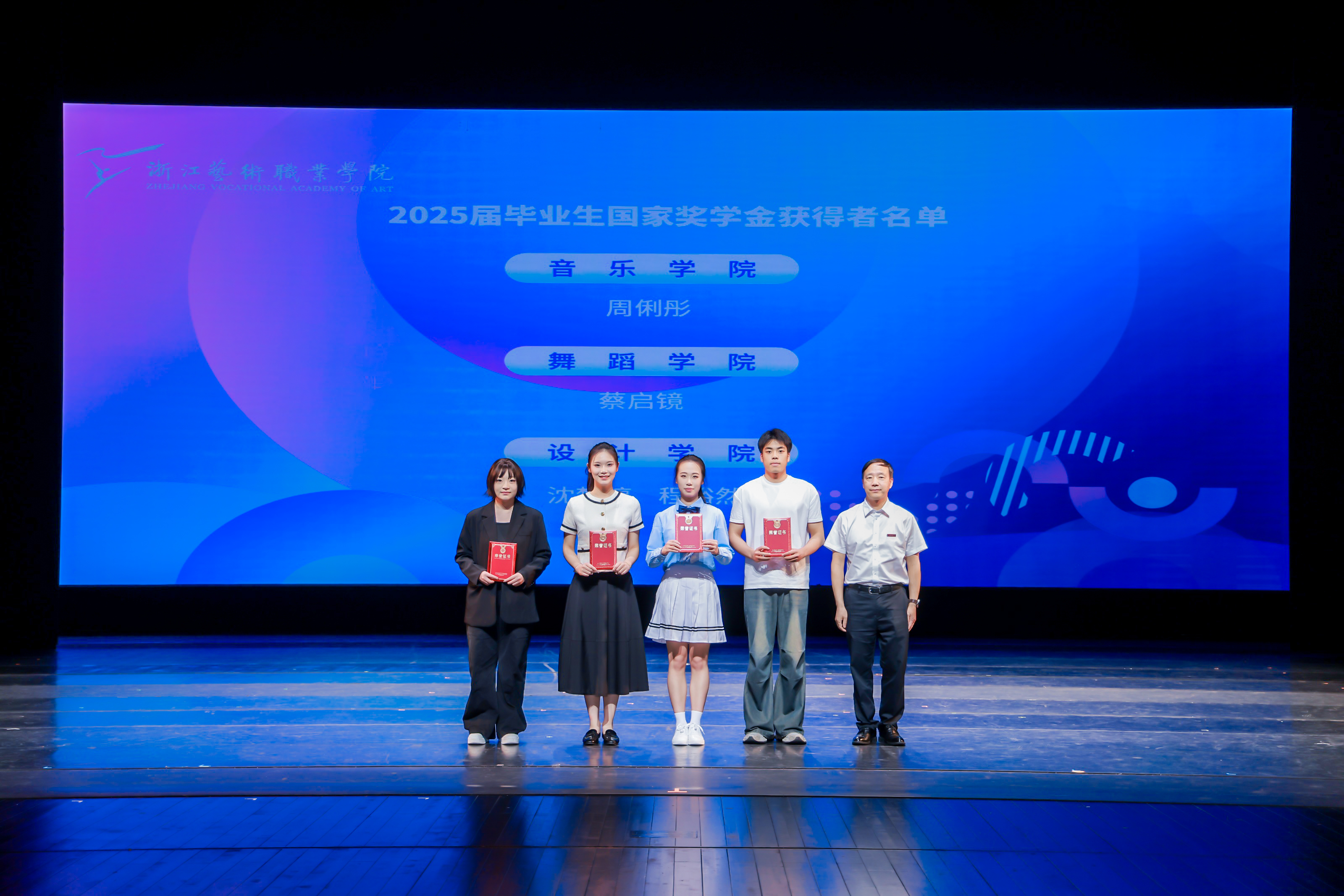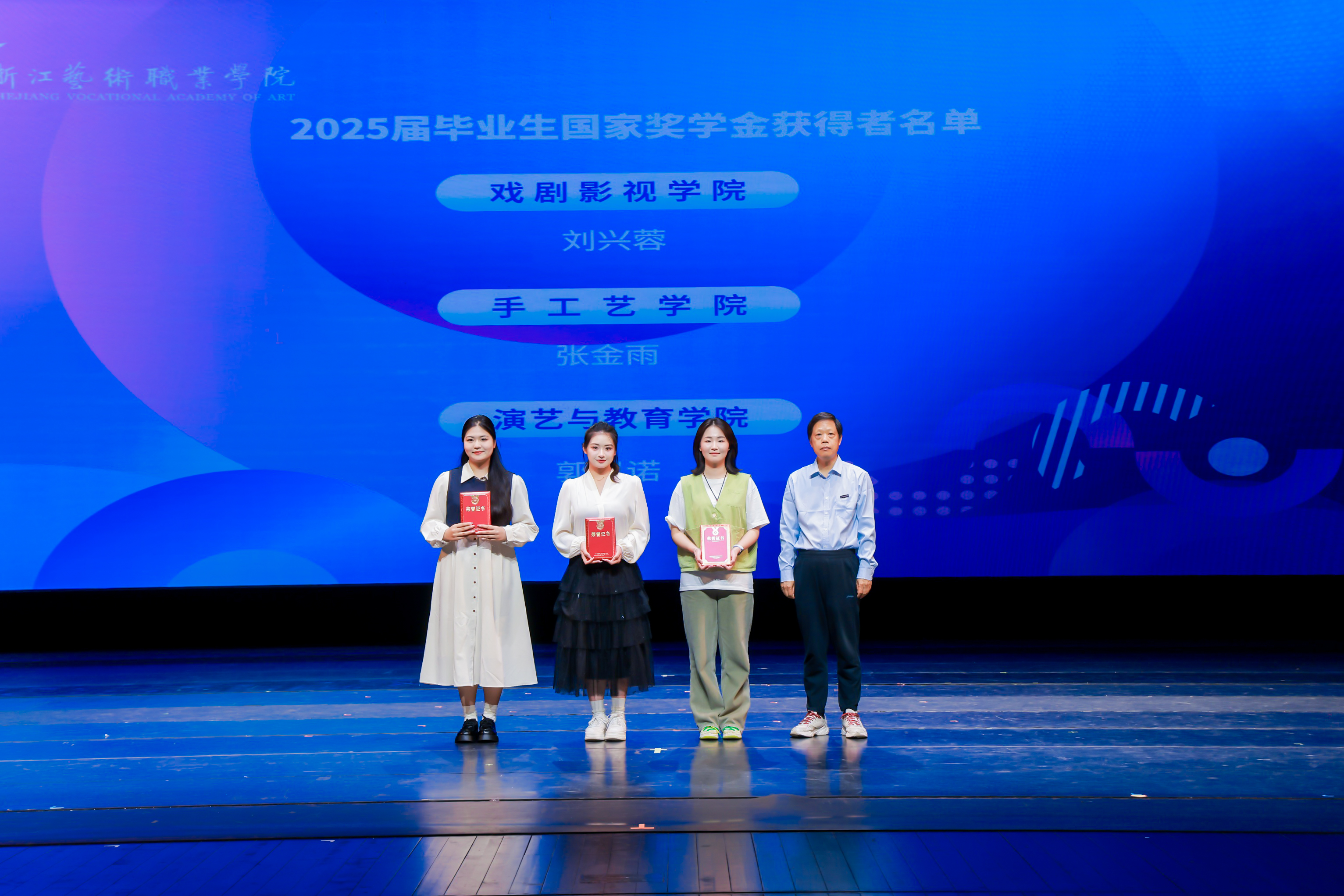 毕业典礼上对校友联络员代表颁发聘书,并为2025届校级优秀毕业生代表、2025届省级优秀毕业生代表及2025届毕业生国家奖学金获得者颁奖。