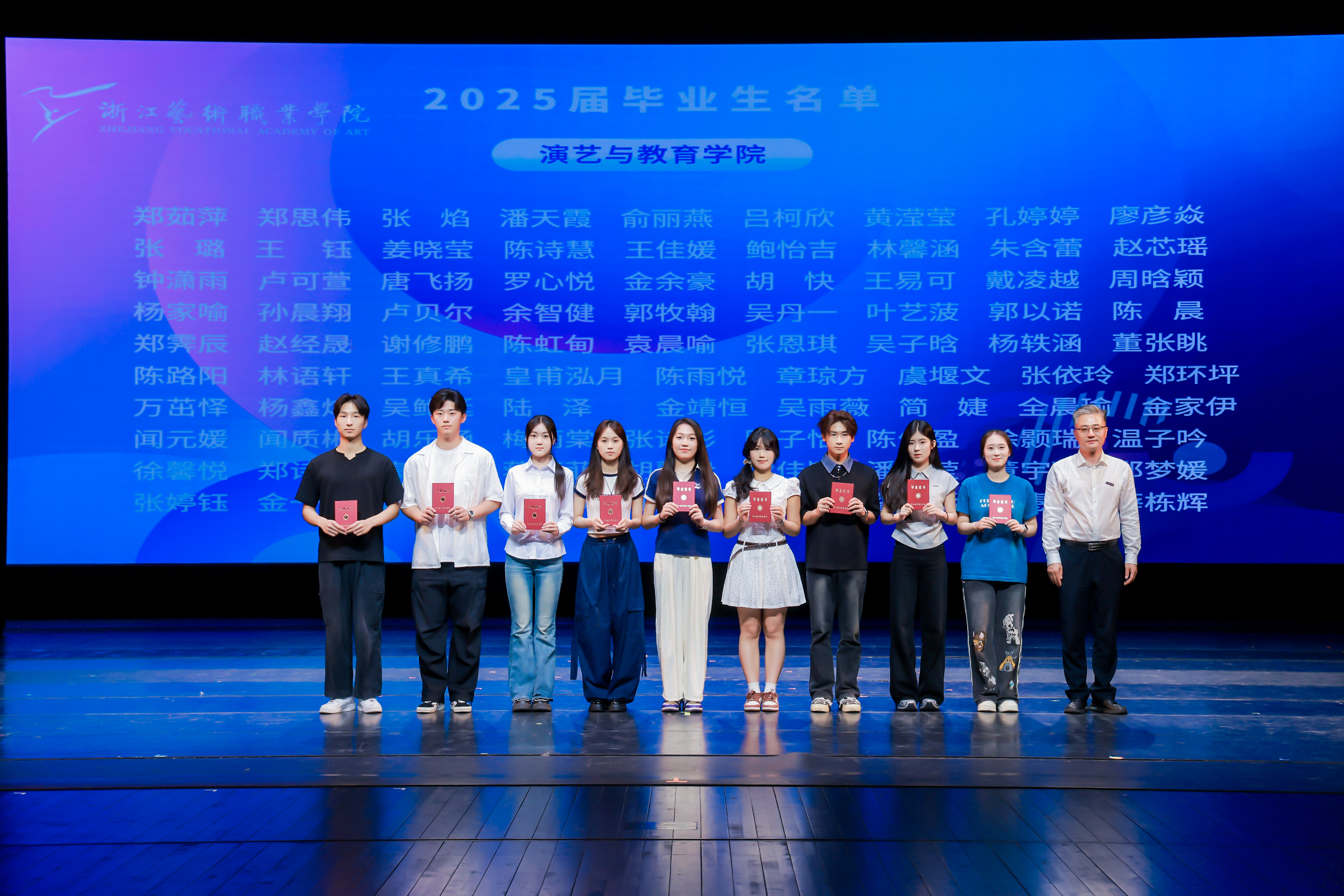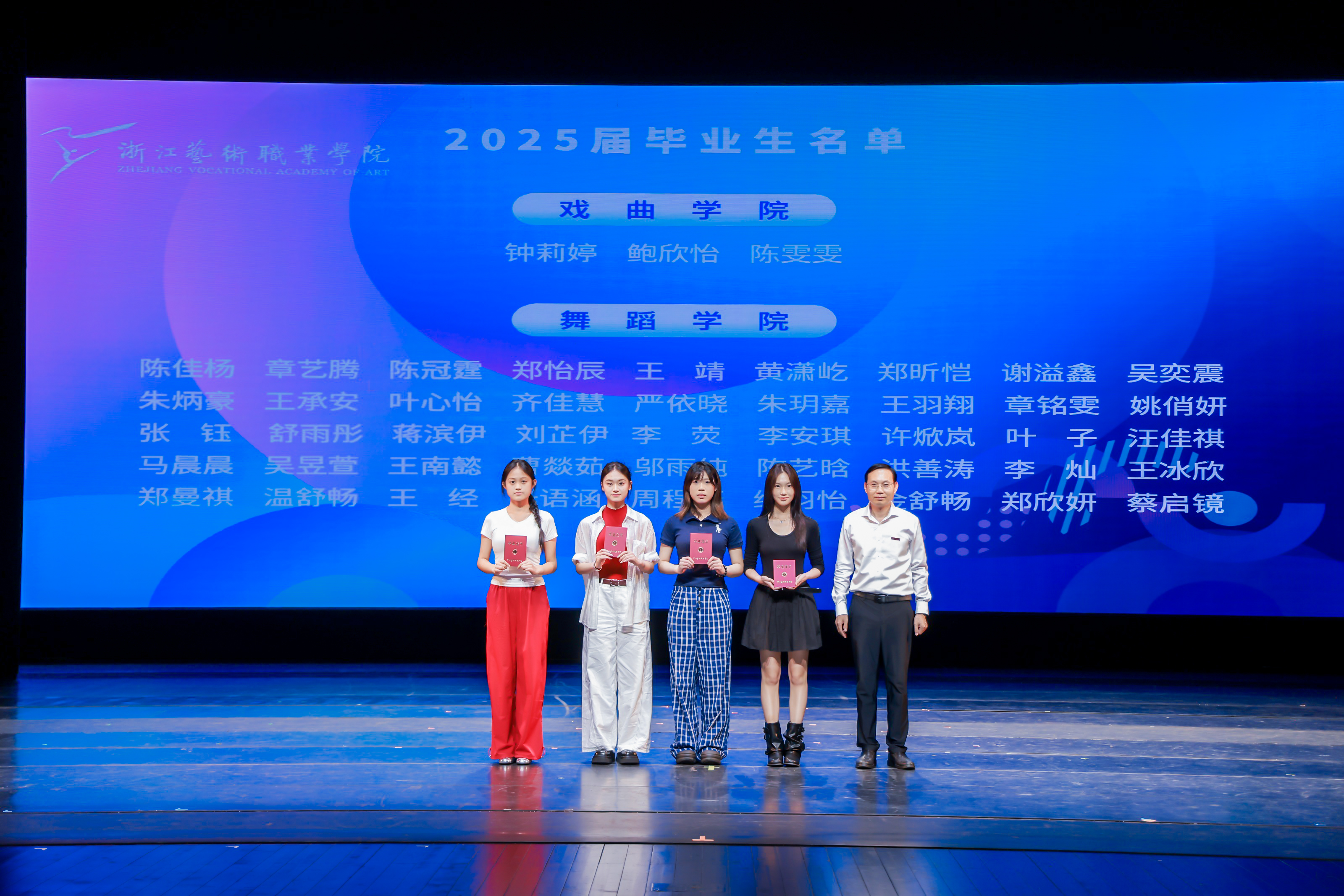 党委书记薛亮、校长施俊天颁发毕业证书并寄语毕业生:做文化自信的践行者,始终秉持为人民抒写、为时代抒怀的志向,铭记校训精神,勇攀艺术高峰;做创新发展的开拓者,永葆创新锐气,主动拥抱变革,努力做艺术创新的开拓者,在中国式现代化的火热实践中发光发热;做服务社会的奉献者,永远保持赤子之心,用文艺之美温暖社会,用专业服务人民,在今后的工作中用实际行动中诠释一名文艺工作者的社会责任。