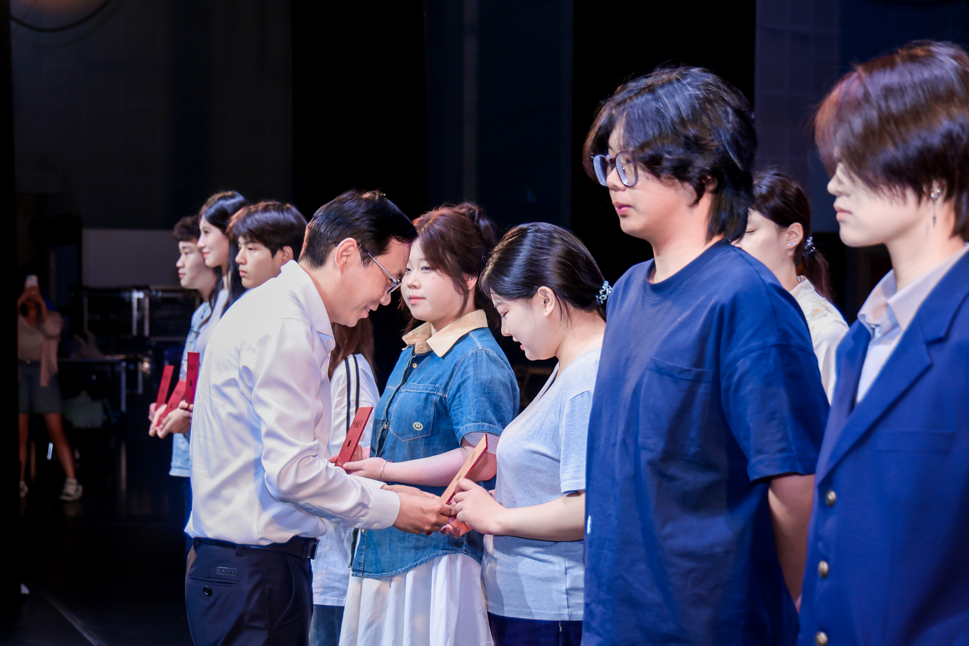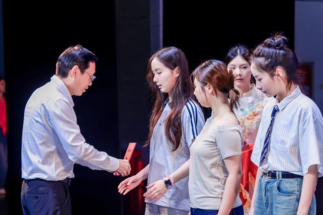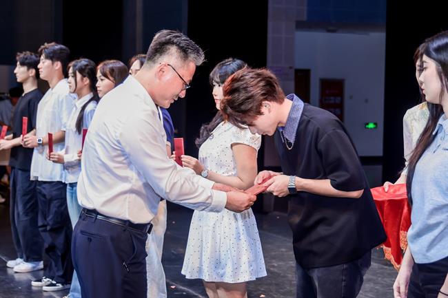 教师代表孙延泽、金美意回顾了同学们在艺术道路上蜕变成长的过程,并勉励同学们:学业结束,并非学习的终点,而是更高层次艺术追求与人生探索的崭新起点,“轻装策马青云路,人生从此驭长风”,未来要永葆追梦的意气,燃亮不灭的艺术激情。