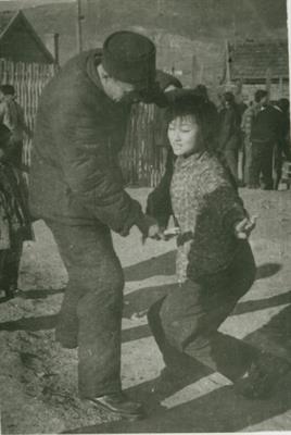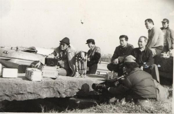 1983年,教师陈宾一、孙锡林与日本导演在绍兴柯桥拍摄电影《空海》外景。左一为日本导演佐藤纯弥,左三为孙锡林,左四为陈宾一