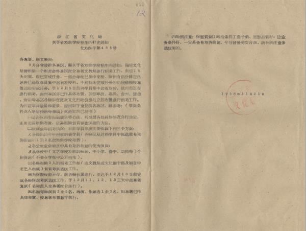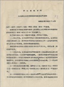 1958年,浙江文化艺术学校电影班、文化班和部分教师与浙江教师进修学院合并,成立浙江省文教学院。