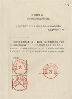 关于浙江省“五·七”艺术学校革命委员会印章启用的通知