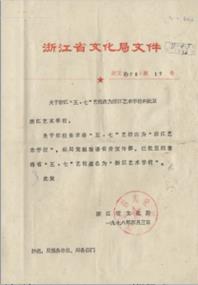 浙江省“五·七”艺校改名浙江艺术学校的批复