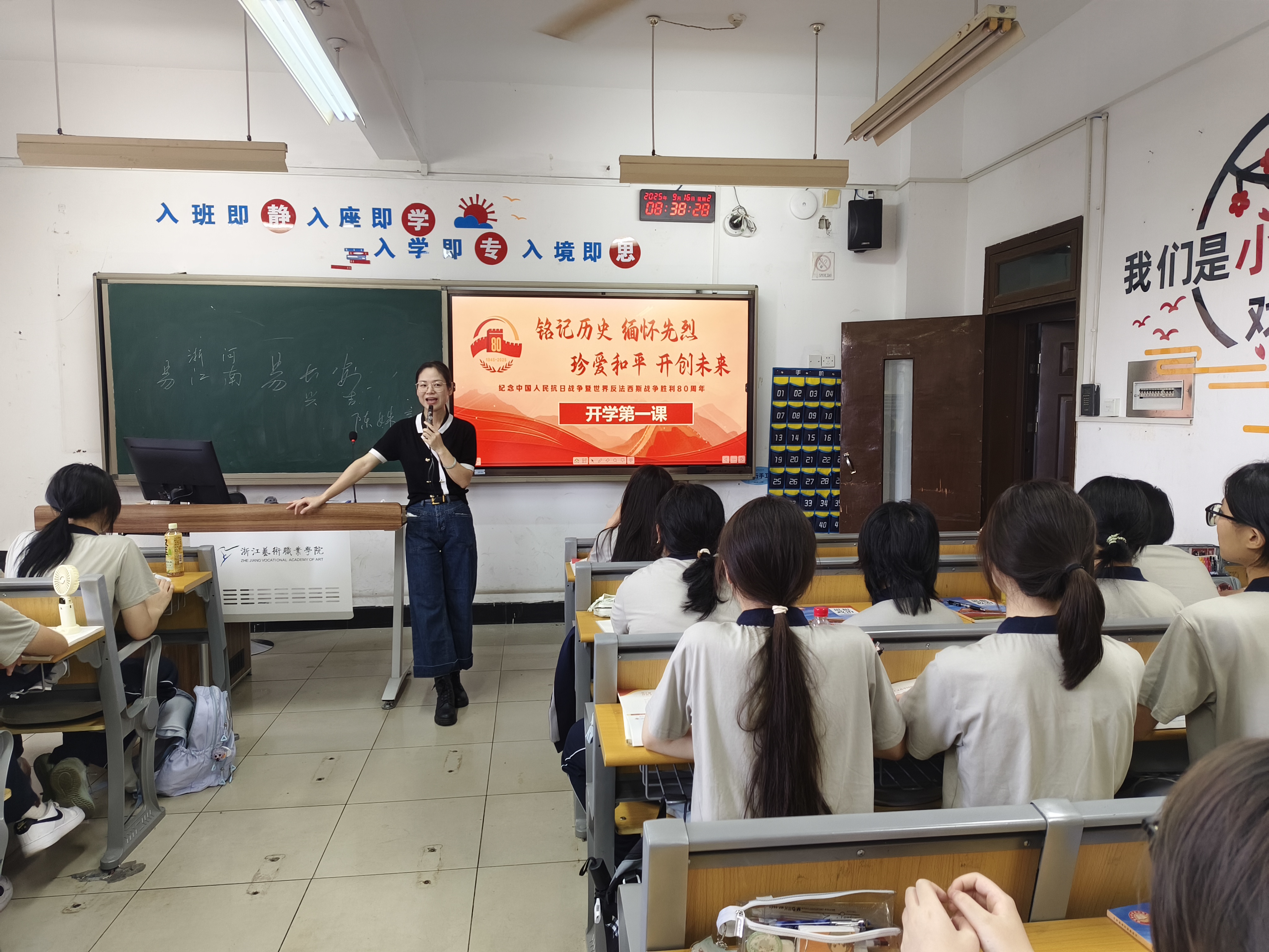 为引导广大青年学子深刻理解历史、感悟精神、明确担当,马克思主义学院统筹安排,在新学期思想政治理论课第一次课上,面对22、23、24、25级五年一贯制学生,依托“中国特色社会主义”“职业道德与法治”“思想道德与法治”“毛泽东思想和中国特色社会主义理论体系概论”课程,围绕“铭记历史,缅怀先烈,珍爱和平,开创未来”这一主题,同上一堂意义深远的中高职一体化思政大课,回望烽火岁月,叩问时代责任。