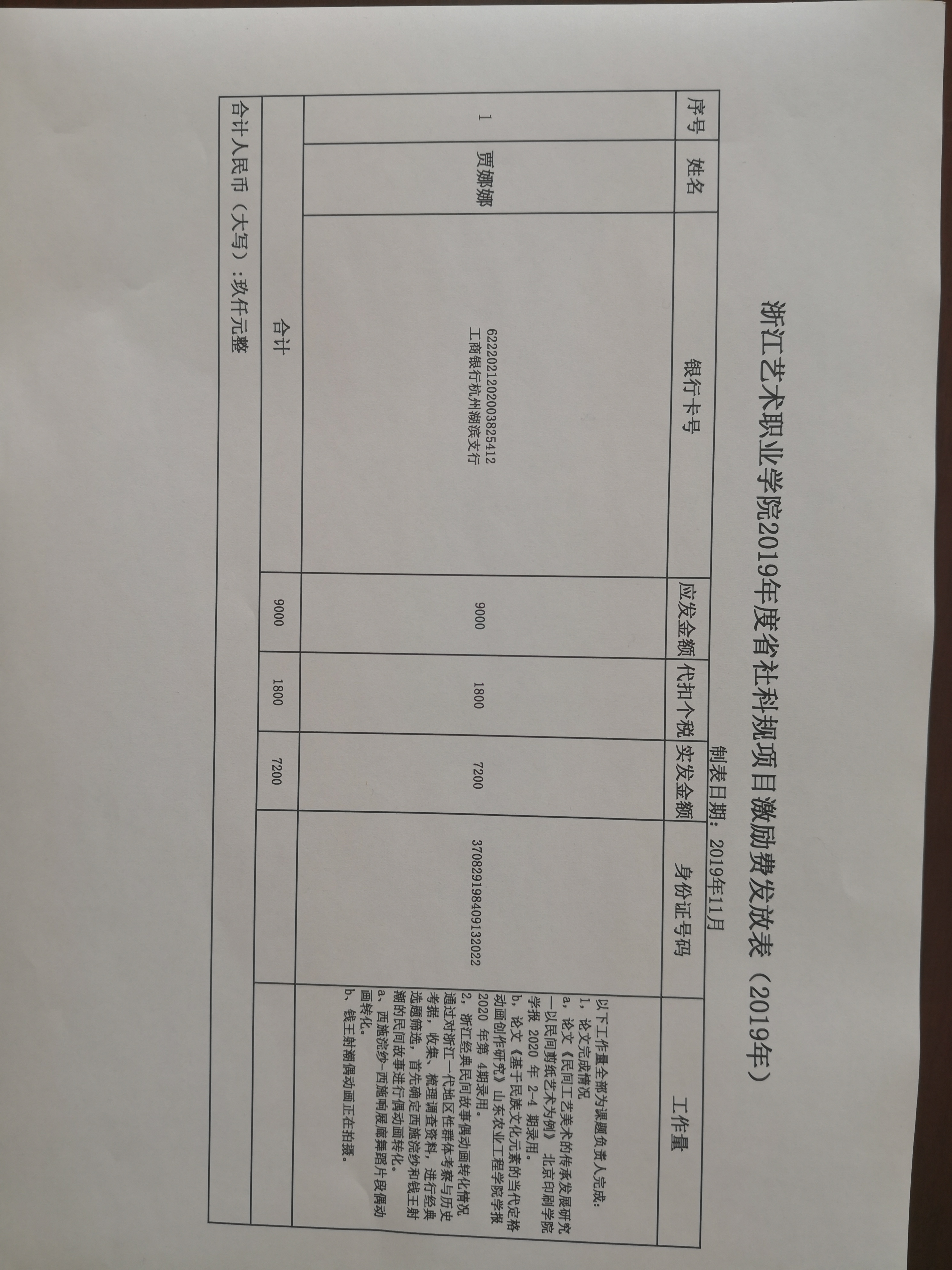 2019 年度浙江省哲学社会科学规划青年课题激励费发放表