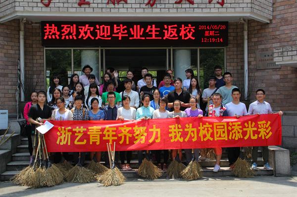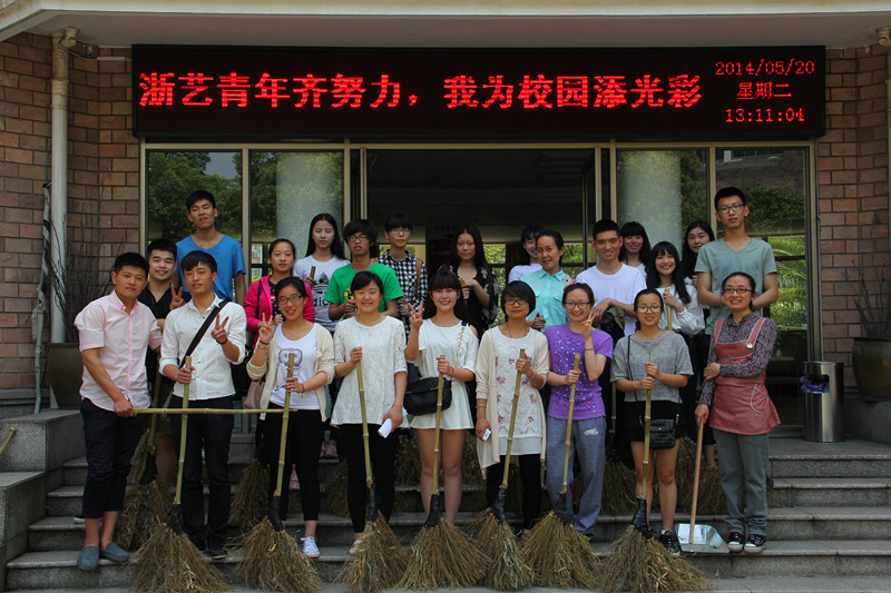 今年是五四运动95周年。520日中午,院团委、院学生会举行“浙艺青年齐努力·我为校园添光彩”专项行动,通过组织青年教师、团干部、学生干部以发表宣言、集体清洁美化校园等形式,引导和激励广大青年坚定中国特色社会主义理想信念,践行社会主义核心价值观,发扬志愿服务精神,增强爱校意识和职业意识,为全院青年学生树立榜样。