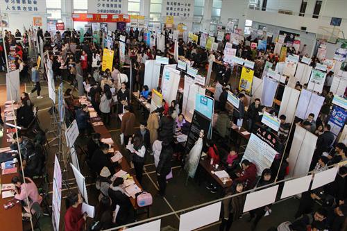 12月18日,我院2016届毕业生招聘会在院体育馆举行,现场人声鼎沸,气氛热烈。学院2016届专科(高职)毕业生共1148人,现场有招聘单位190家,为历年参加学院招聘会最多,提供岗位约2000个。招聘单位包括浙江歌剧舞剧院、杭州歌剧舞剧院、杭州青少年活动中心等,堪称全省规模最大的艺术类毕业生专场招聘会。
