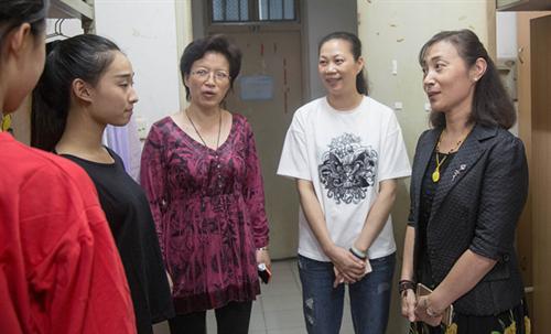 在学生公寓,新生还遇到了走访新生寝室的学院党委副书记黄杭娟、学生处副处长郑园全和舞蹈系党总支副书记陈英。三位老师走过一间间寝室,和新生聊天——