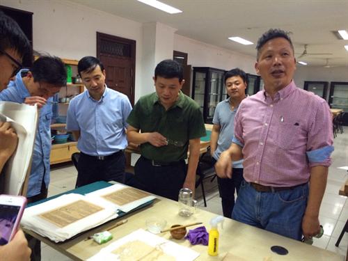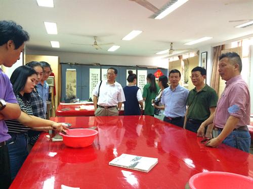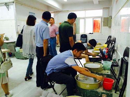 随后,胡国光一行参观了音乐系、舞蹈系和文化管理系文物修复、文物鉴定、古籍修复、陶艺制作实训室等。