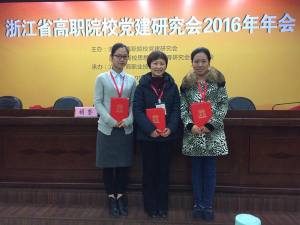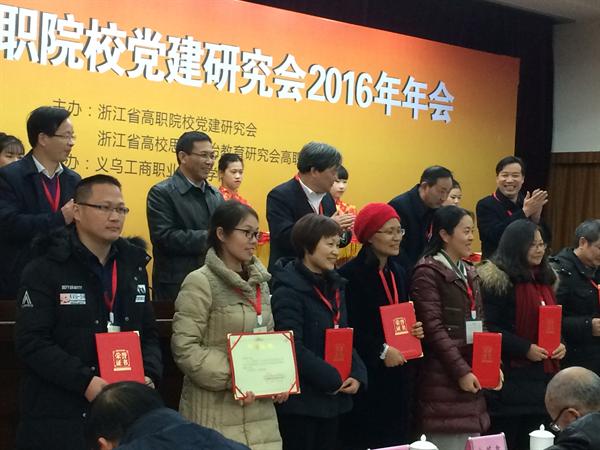 大会对年会优秀论文、优秀课题、优秀通讯员进行表彰,并开展党建、思政工作优秀科研成果专题交流。浙艺图书信息中心副主任(主持工作)金银琴的论文《构建主题立体阅读模式 提升学生阅读素养》获年会论文二等奖,并代表浙艺作优秀论文交流发言;影视技术系办公室主任王筱芽的论文《学分制背景下高职艺术院校思政建设及应用的实践研究》获年会论文三等奖;宣传教育处处长马向东2015年课题《艺术高职院校文化校园建设的特色和途径 》获优秀结题;宣教处干事阮奕被评为2016年度优秀通讯员。
