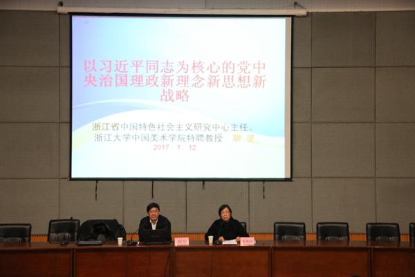 报告会上,胡坚围绕“以习近平同志为核心的党中央治国理政新理念新思想新战略”这一主题,结合习近平总书记系列重要讲话精神,站在全局和战略高度,从党的十八大以来治国理政的新理念新思想新战略、坚持以人民为中心的发展是解决发展的根本出发点和落脚点、树立创新协调绿色开放共享发展的理念是解决怎样发展的理念与方法问题、构建合作共赢的新型国际关系是解决中国发展的国际大环境问题、加强意识形态工作是解决良好政治环境与凝聚人心的问题等7个方面,系统深入地阐述了十八大以来党中央治国理政新理念新思想新战略所形成的脉络及其丰富的内涵。他针对当今社会发展的新趋势、新经验及热点问题,联系浙江实际,提出了许多独到观点。针对此次辅导报告的受众对象为艺术院校师生,胡坚在讲座中着重谈到,要将坚定师生的理想信念摆在重要位置,培养“智慧双修”的学生;要有效开展校园文化建设,加强学生思想政治工作;艺术院校要为浙江建设文化强省作贡献等内容,赢得了听讲师生的内心共鸣。整场辅导报告全面系统、深入浅出,既有理论高度又有现实针对性,对我院师生深刻理解和准确把握党中央治国理政新理念新思想新战略有着极大帮助和启发。他的讲座风趣幽默、语言生动、案例丰富,受到师生们的广泛欢迎。