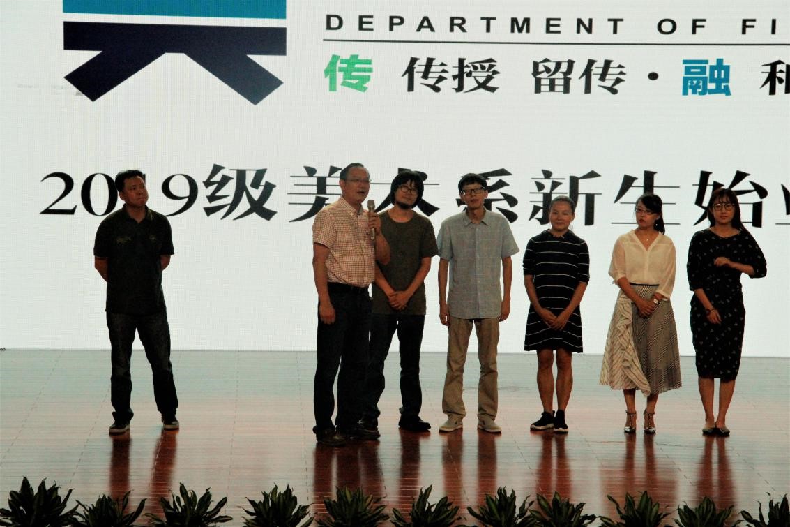 9月11日晚上六点,美术系举行2019级新生始业教育活动。美术系党政领导班子携全体教师与新生见面。美术系党总支书记、副主任(主持工作)刘发奎老师向全体新生问好,向同学们讲述“德、智、体、美、劳”全面发展的内涵,特别强调大家在“劳”方面的践行,也祝愿同学们在美丽而温馨的浙艺生活、学习愉快。美术系两位教授杜晨鹰、陈志明向新生们传授了学习方法,并真切寄语。各专业教研室向学生介绍专业情况、学习之路、就业方向等等。办公室、团学的老师们向新生们介绍了日常规章,为同学们在校在系的学习、生活、办事提供了便捷路径。