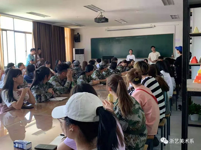 美术系17团学全体成员与19级团学新成员进行了会面。会议的参加者们都逐一做了简短的自我介绍。主席莫超伊对新生们也表示了衷心的祝贺与欢迎。