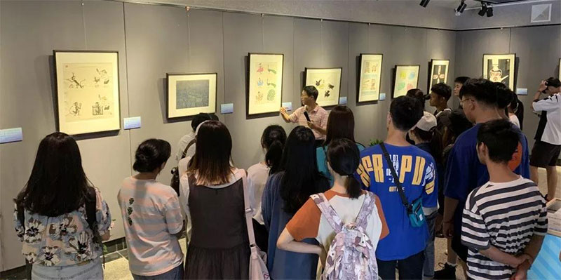 2019年9月19日下午,俞志达老师在四号楼一楼展厅为18动漫班的同学开展了一堂生动的专业面对面讲座。现场他向同学们介绍了每一幅展示在厅中的漫画作品,有趣的创作过程和绘声绘色的语言,使大家听的津津乐道。