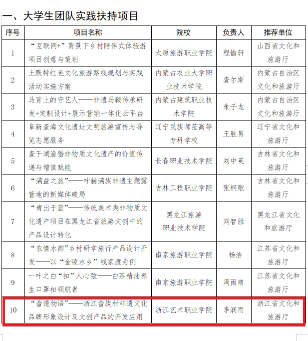喜报|设计学院大学生团队实践扶持项目入选2022年度文化艺术职业教育和旅游职业教育提质培优行动计划名单