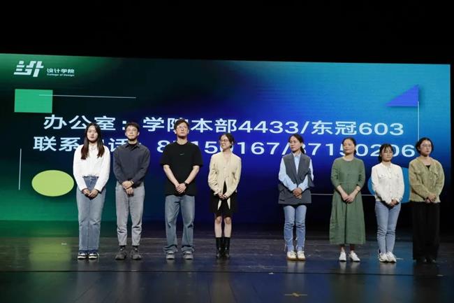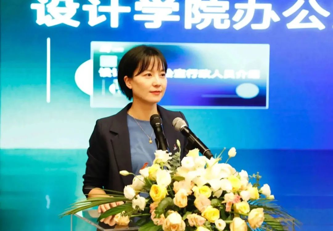 何佳玮作课程规划介绍。她提到,设计学院联合马克思主义学院、基础教学部的教学力量,打造专业课程与通识课程并重的教学体系,设计学子应笃学奋进、求知力行,在丰富的课程选择和教学内容中拓宽人文学术视野,提升思想道德品性,擦亮职业道路底色。
