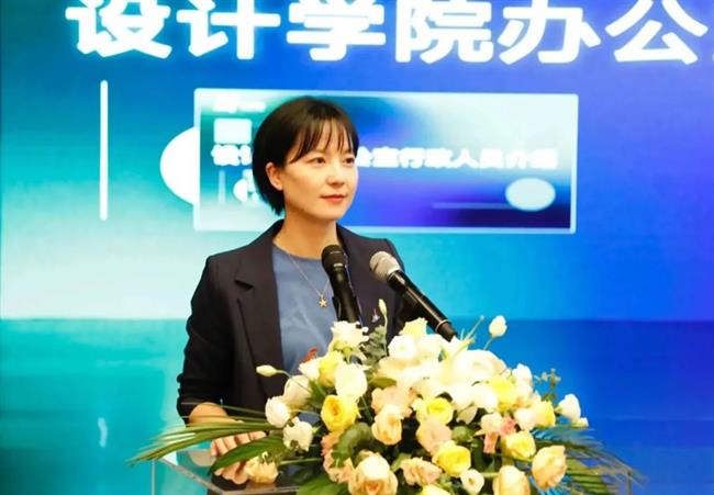 设计学院办公室主任陈蔚介绍行政人员团队及负责的工作内容。
